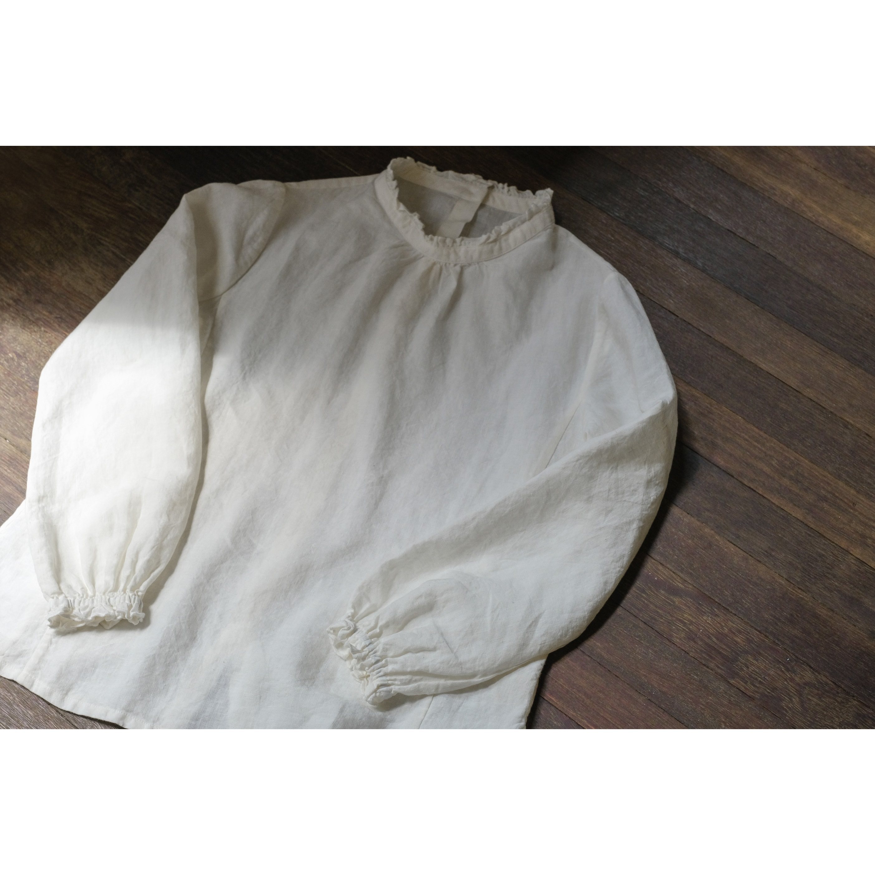 📚 复述砂洗亚麻后背扣气质长袖上衣 秋冬新款木耳领文艺白衬衫