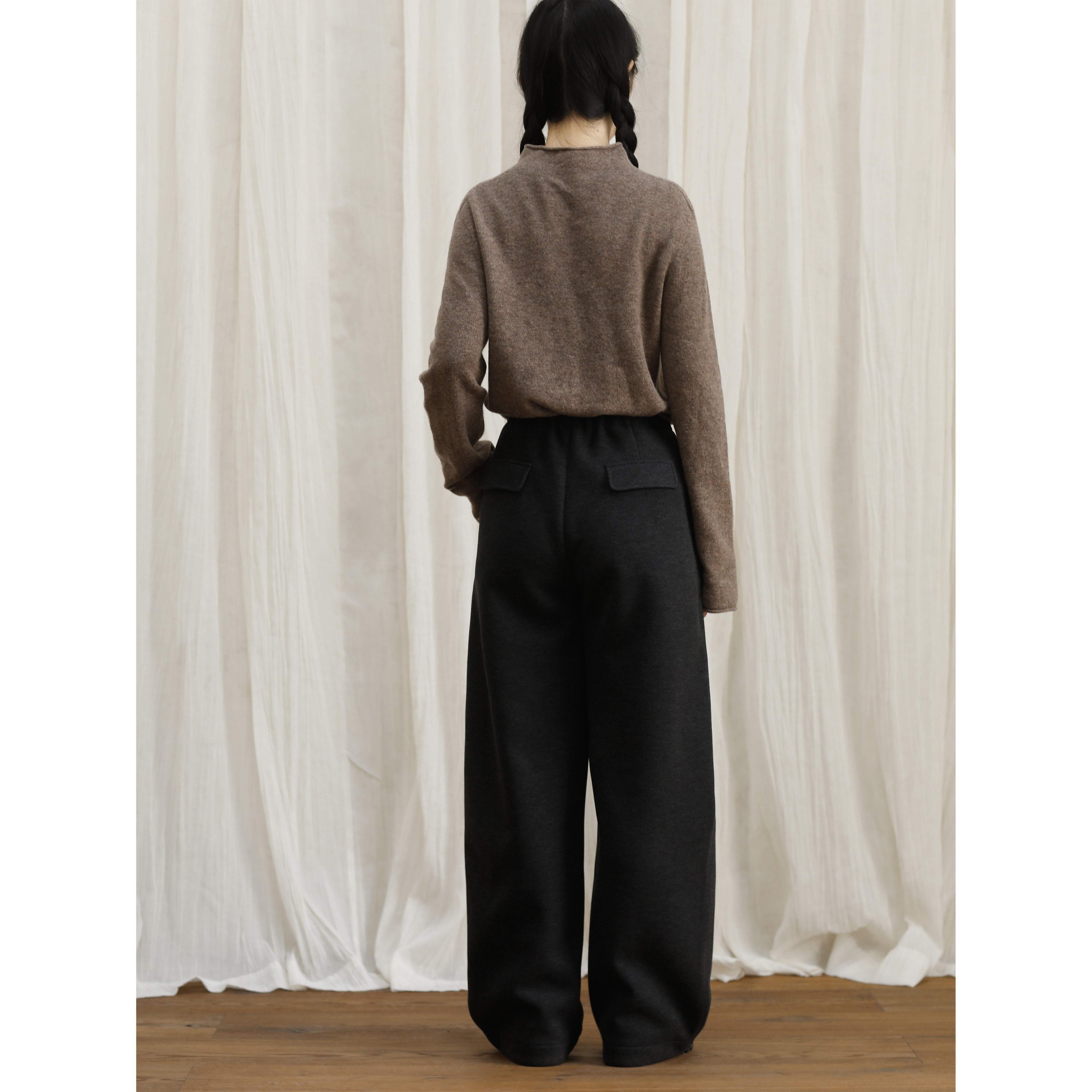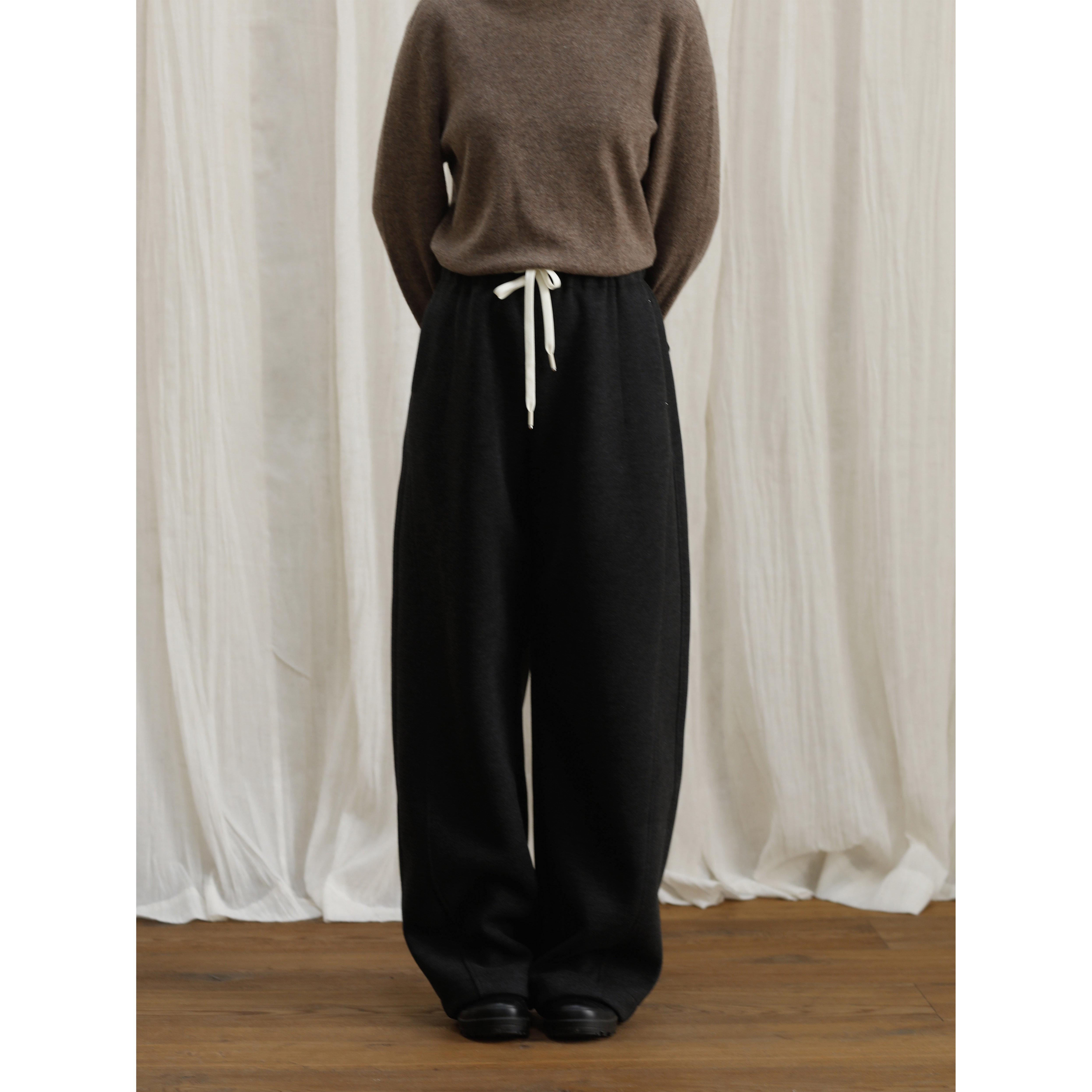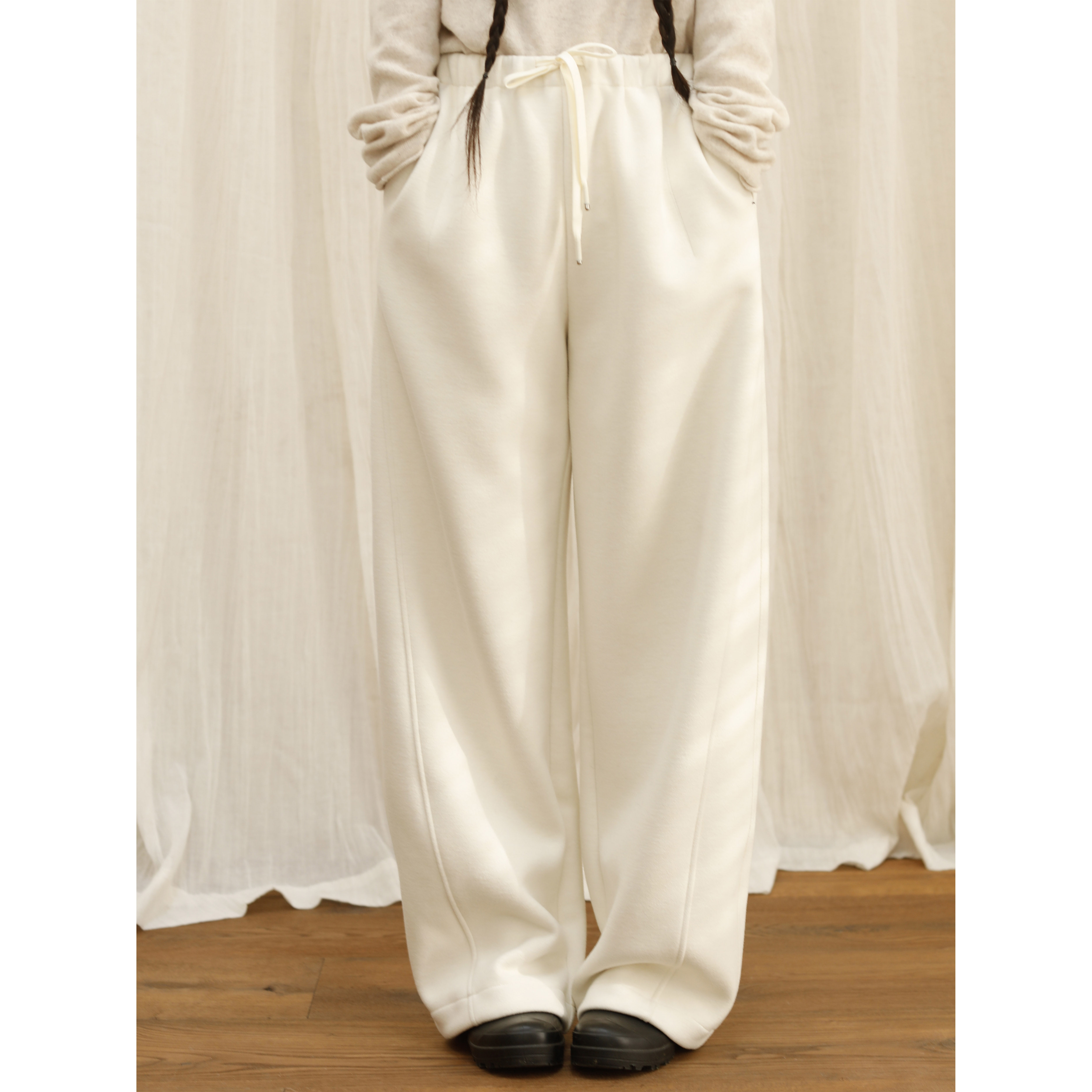 📚 复述立体感加厚抽绳设计全松紧腰保暖宽松羊毛裤两色休闲阔腿裤