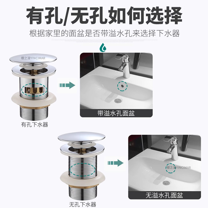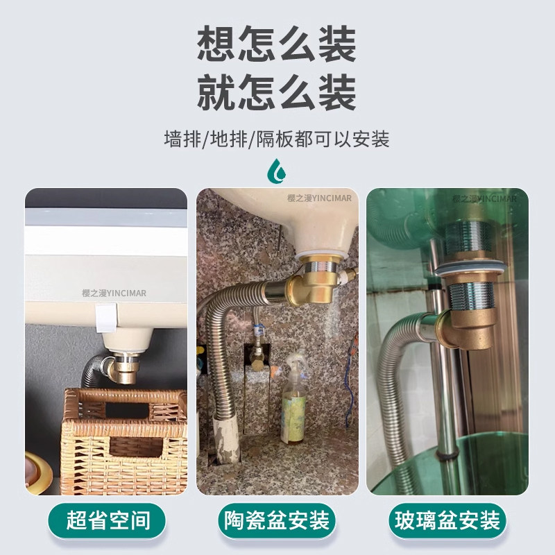 📚 洗手盆下水管道侧排纯铜面盆下水器排水管墙排洗脸盆配件节省空间