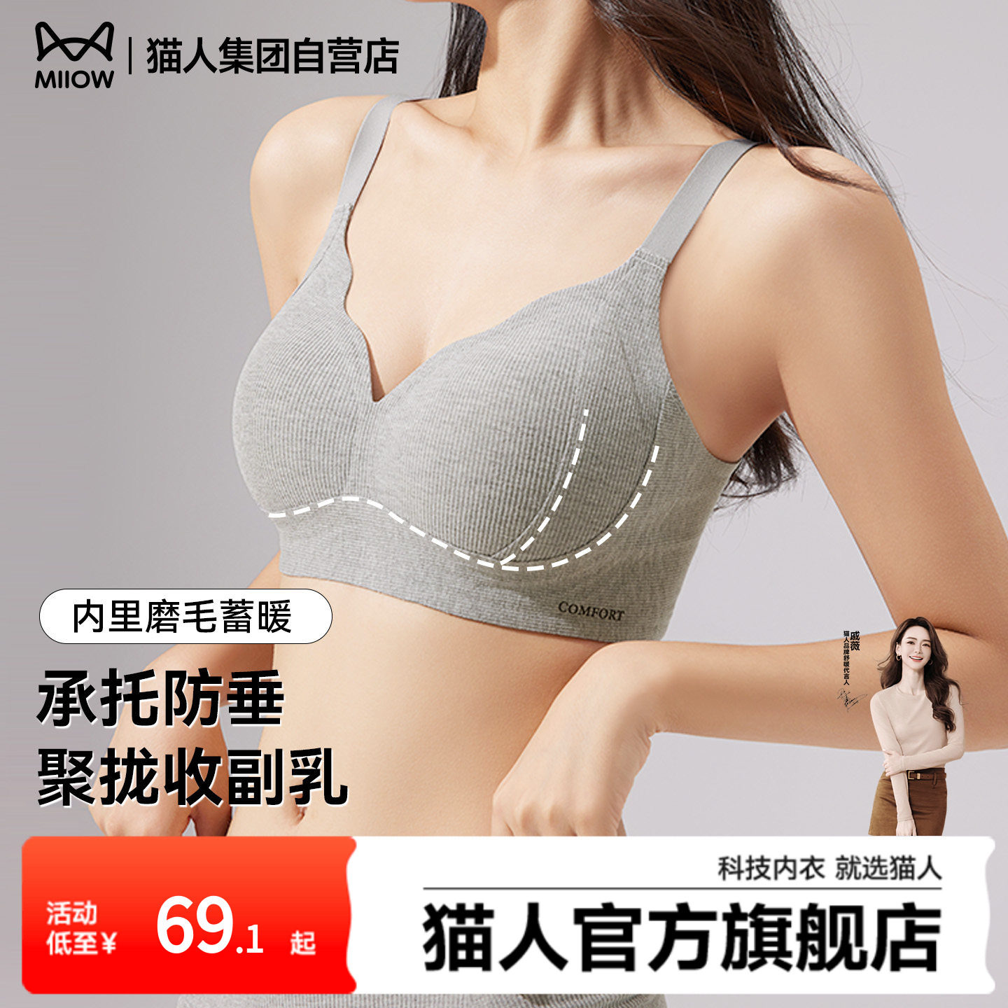 📚 猫人内衣女士提拉上承托收副乳防下垂无痕小胸聚拢显大保暖文胸罩