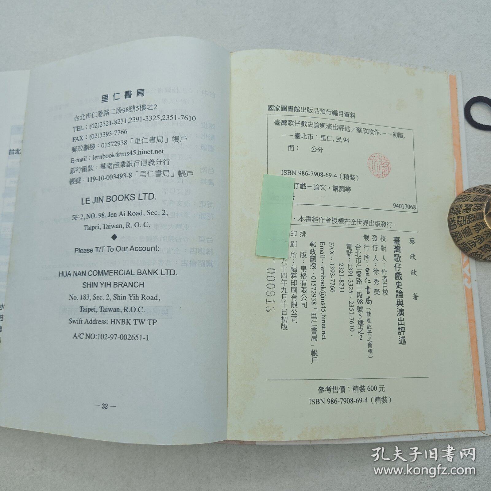 78¥ MF287 jVwjUoqw561¥ https://m.tb.cn/h.7yLvpA8 【港台原版】臺灣歌仔戲史論與演出評述(软精装)2005年9月版蔡欣欣 台湾里仁书局/正版现货 --------------------- 【原售价】145元 【现售价】145元。