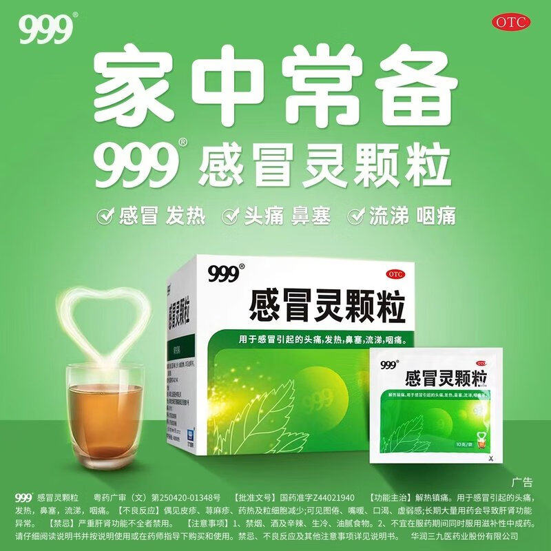📚 999三九感冒灵颗粒10g*9袋头痛塞流涕咽痛解热镇痛发热鼻华润三九