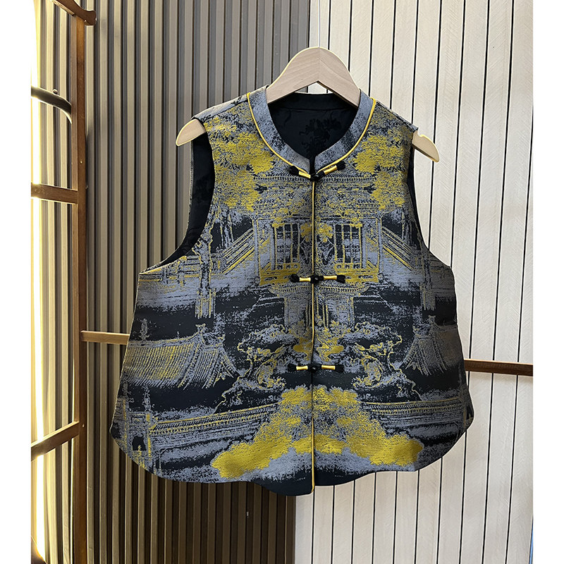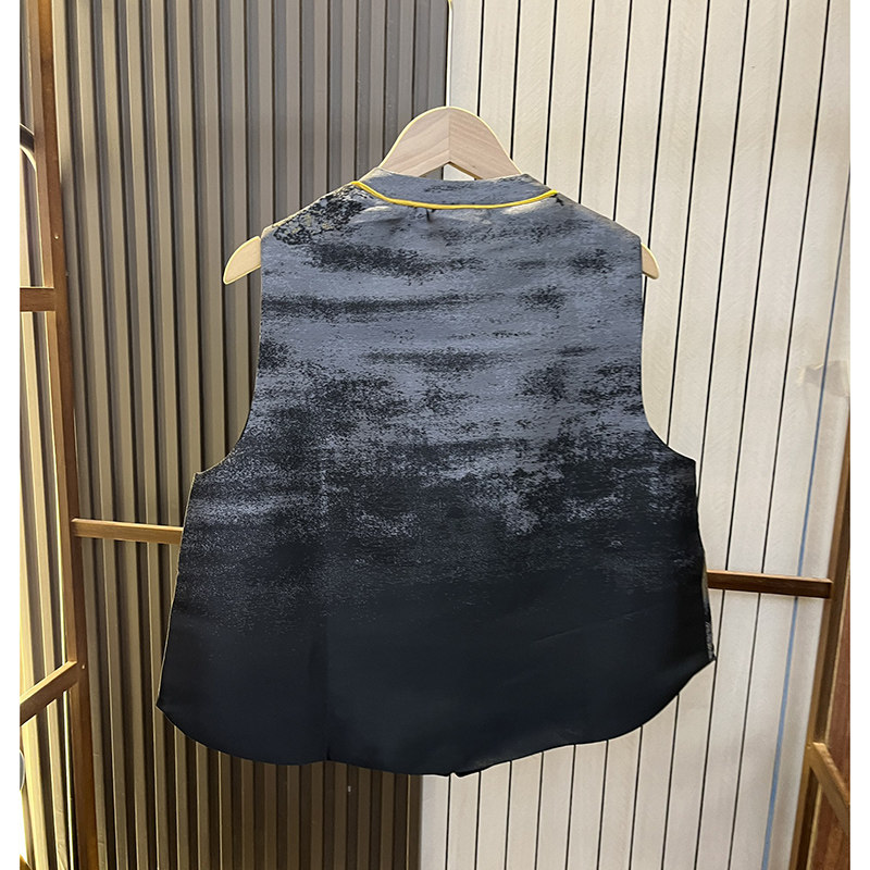 📚 水墨画晕染宋锦新中式国风马甲女盘扣宽松高端提花复古马夹上衣