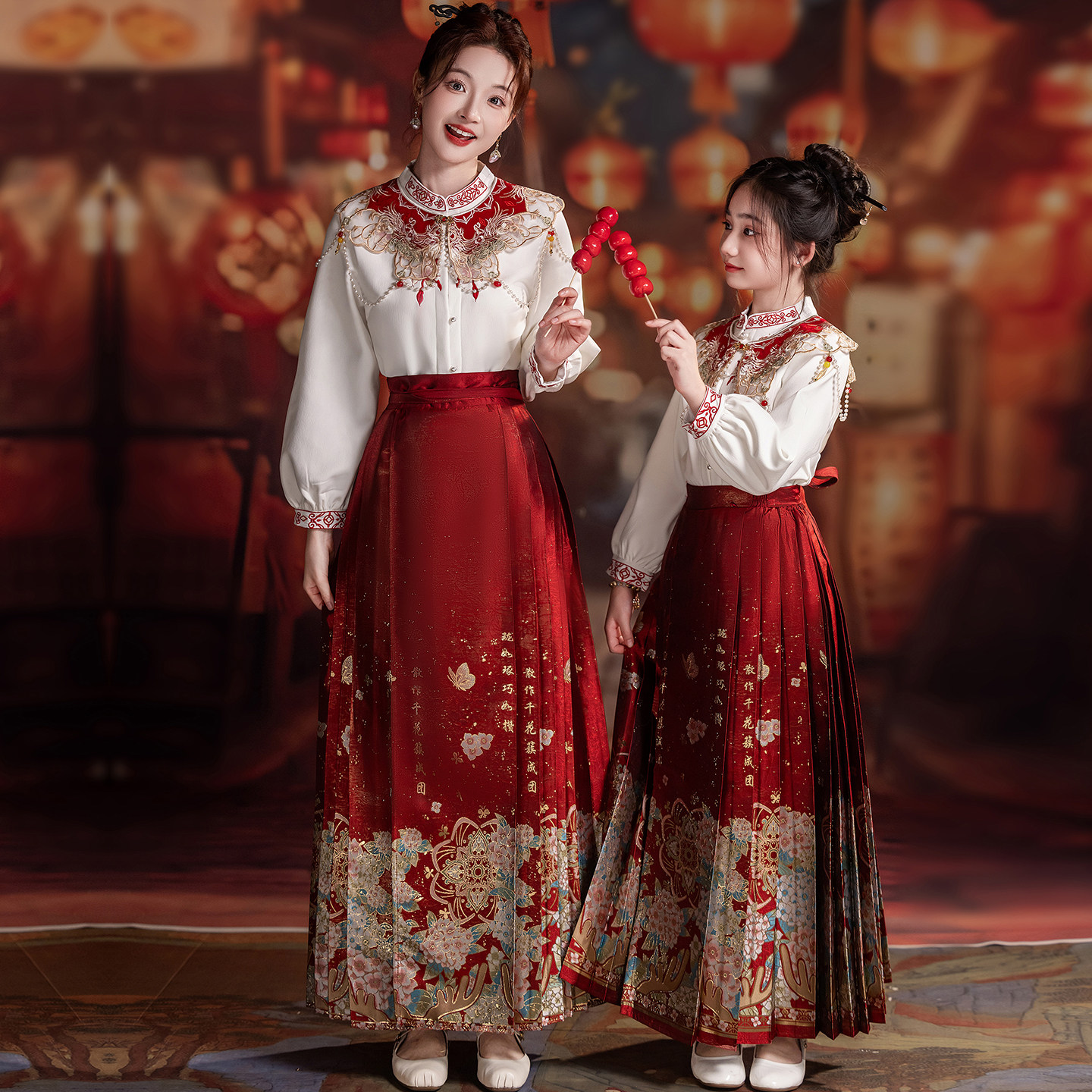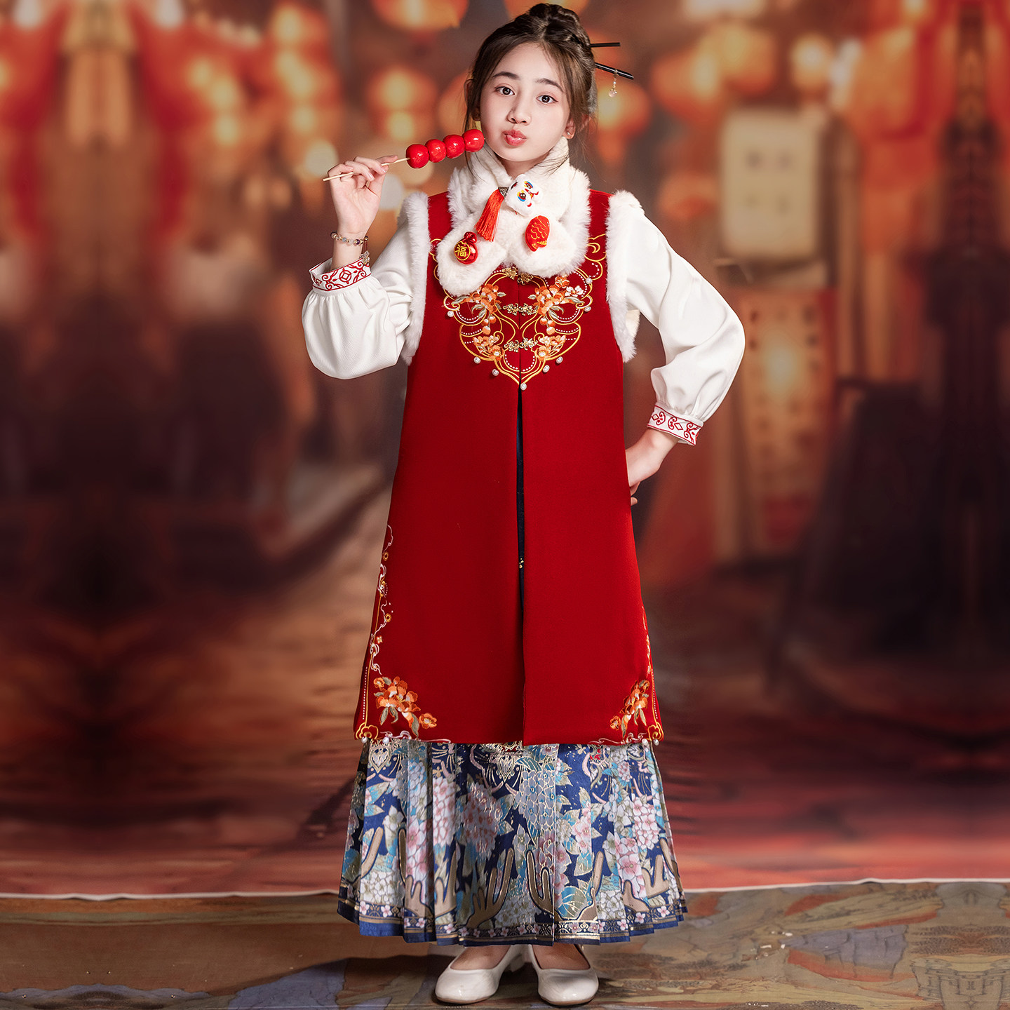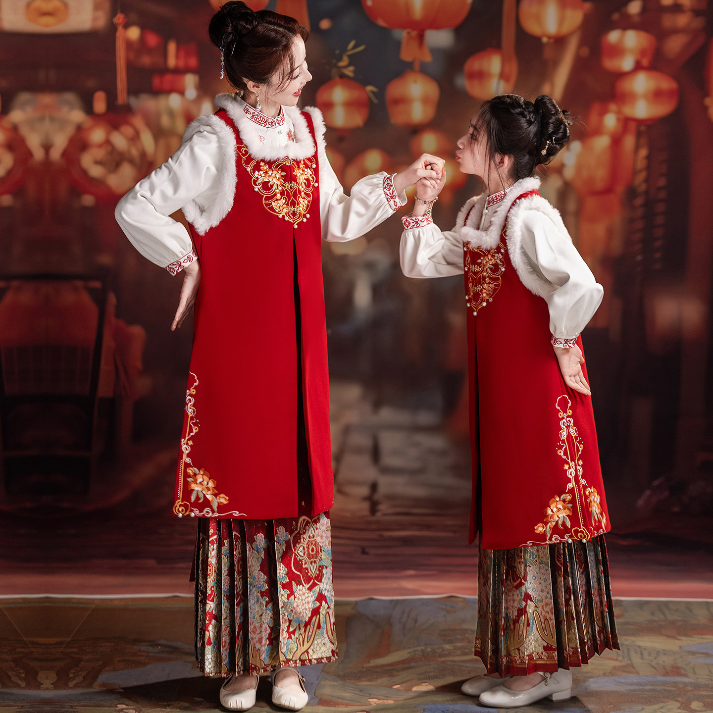 📚 拜年服女童新中式国风马甲儿童汉服2025新款母女装马面裙冬装唐装
