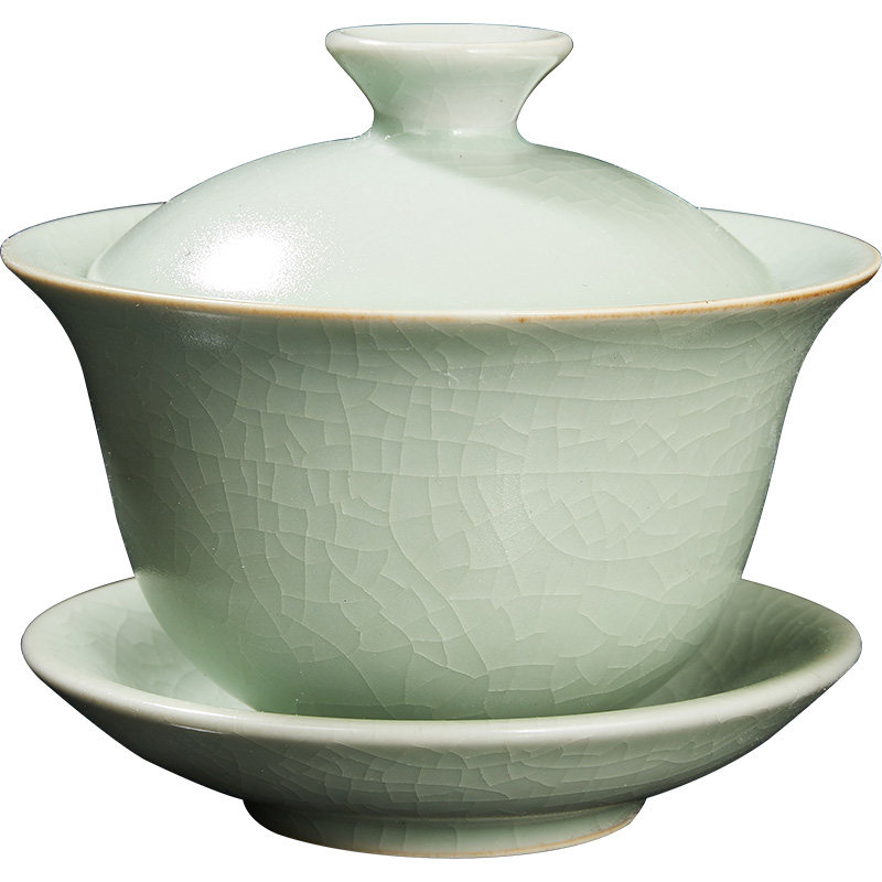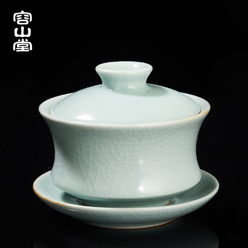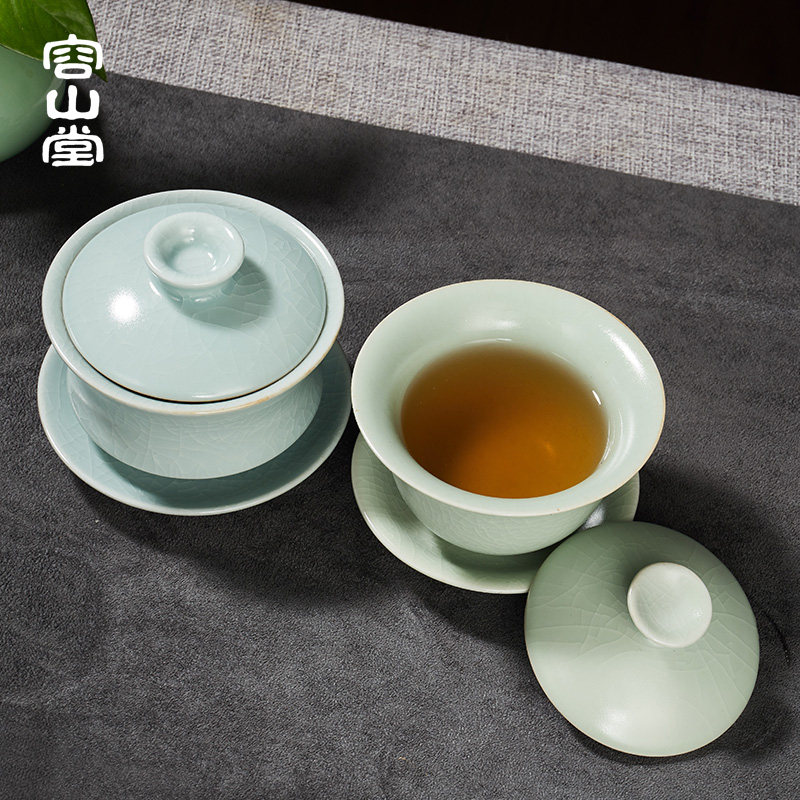 📚 容山堂天青汝窑汝瓷三才盖碗单个高档不烫手大号青瓷功夫茶茶具