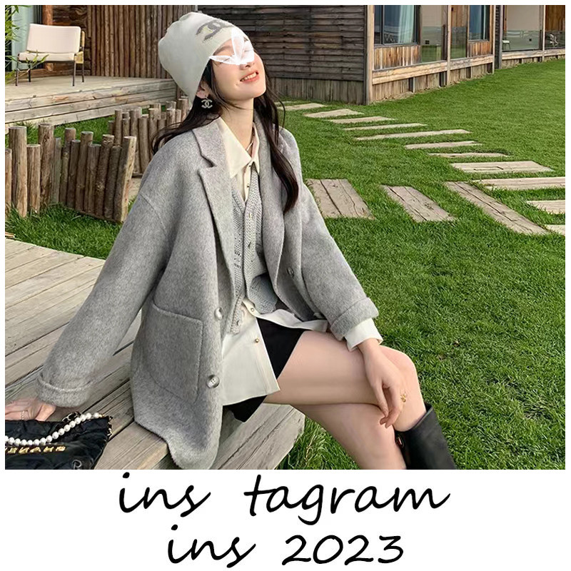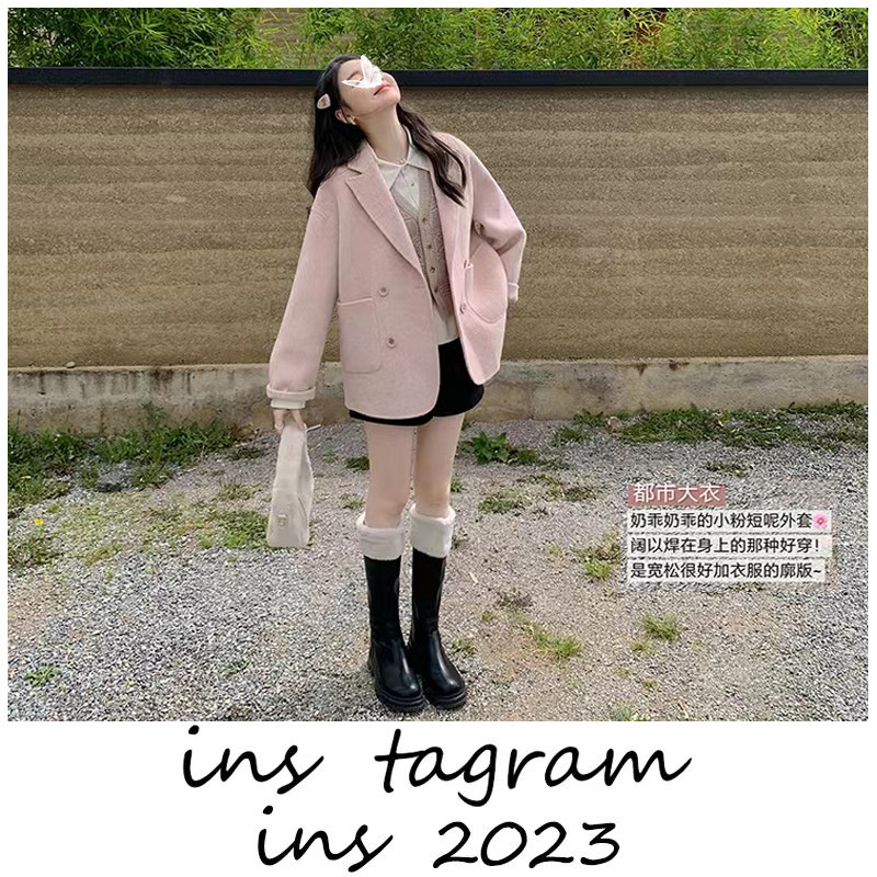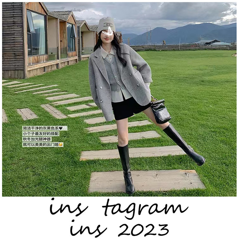 📚 都市套组 驼绒羊毛混纺毛呢外套短款小个子穿搭一整套