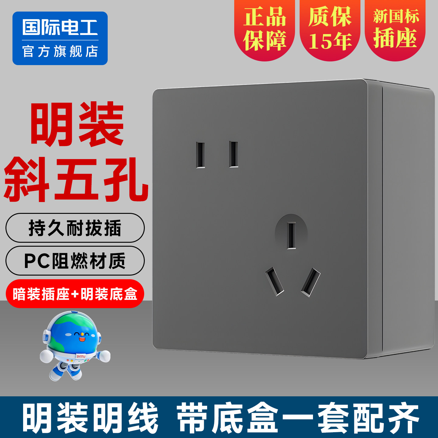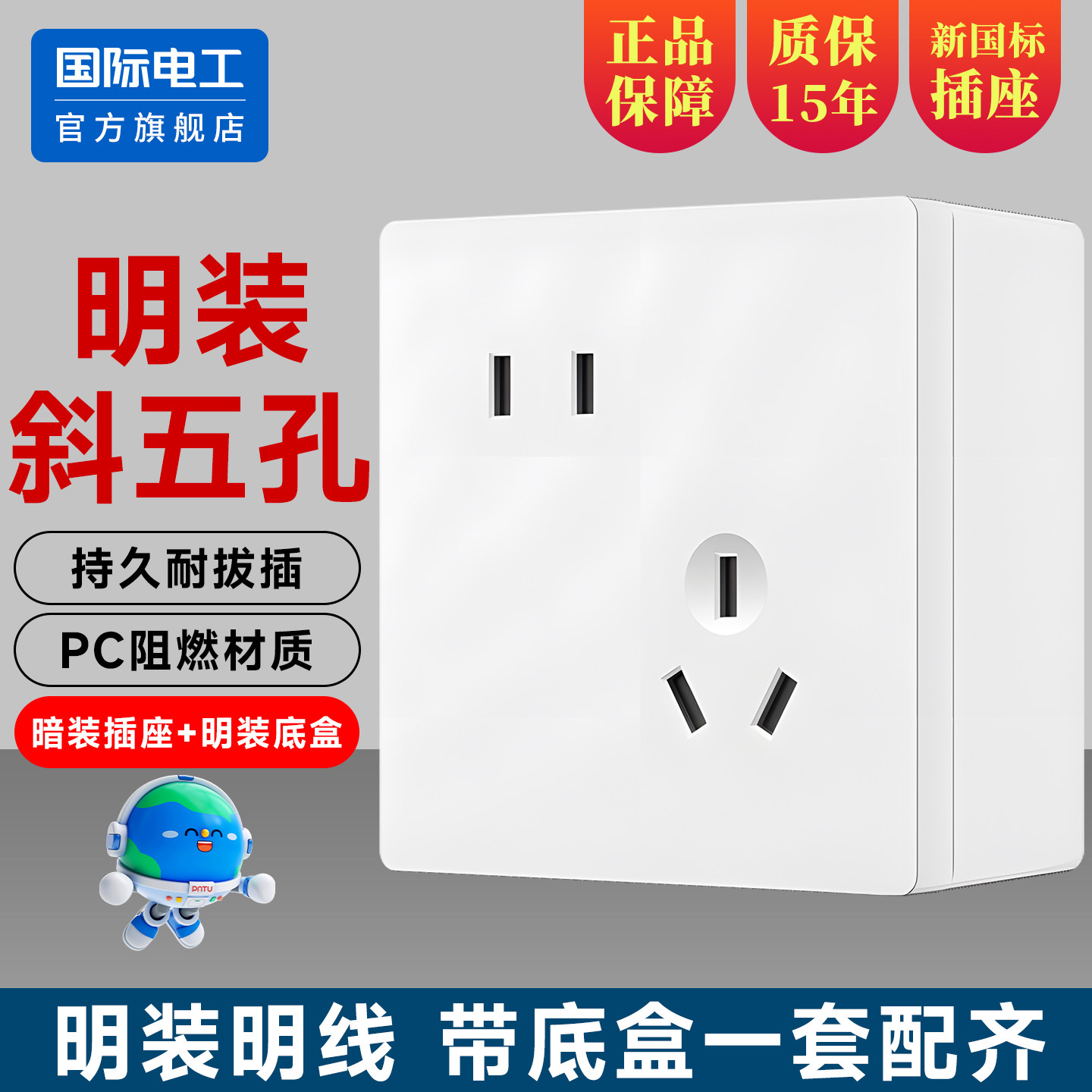 📚 86型家用电器10A斜五孔插座明装明线错位5孔二三插电源16A3孔面板