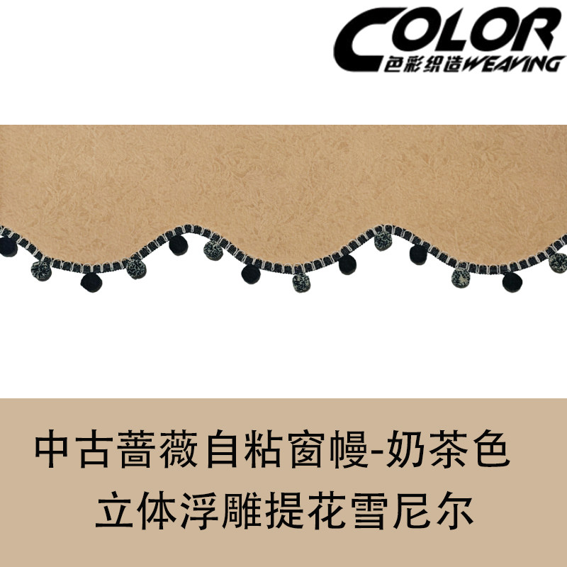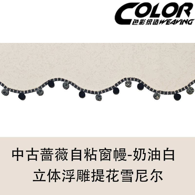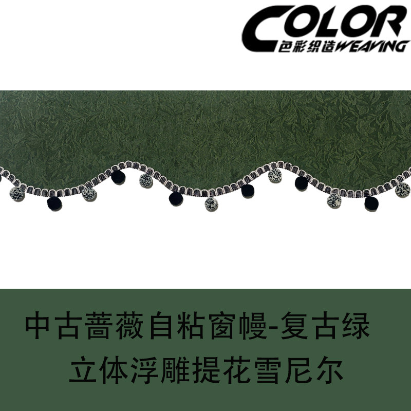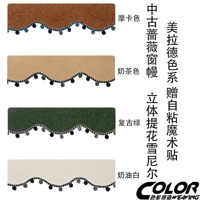 📚 中古蔷薇窗帘帘头弧形定制遮光窗幔魔术贴自粘免安装杨梅球花边款