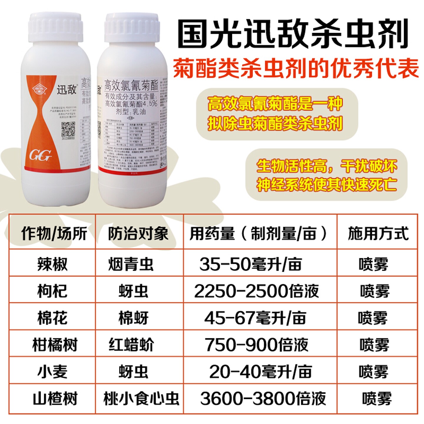📚 国光迅敌高效氯氰菊酯农药杀虫剂大全果树专用蚜虫蔬菜青虫洋辣子
