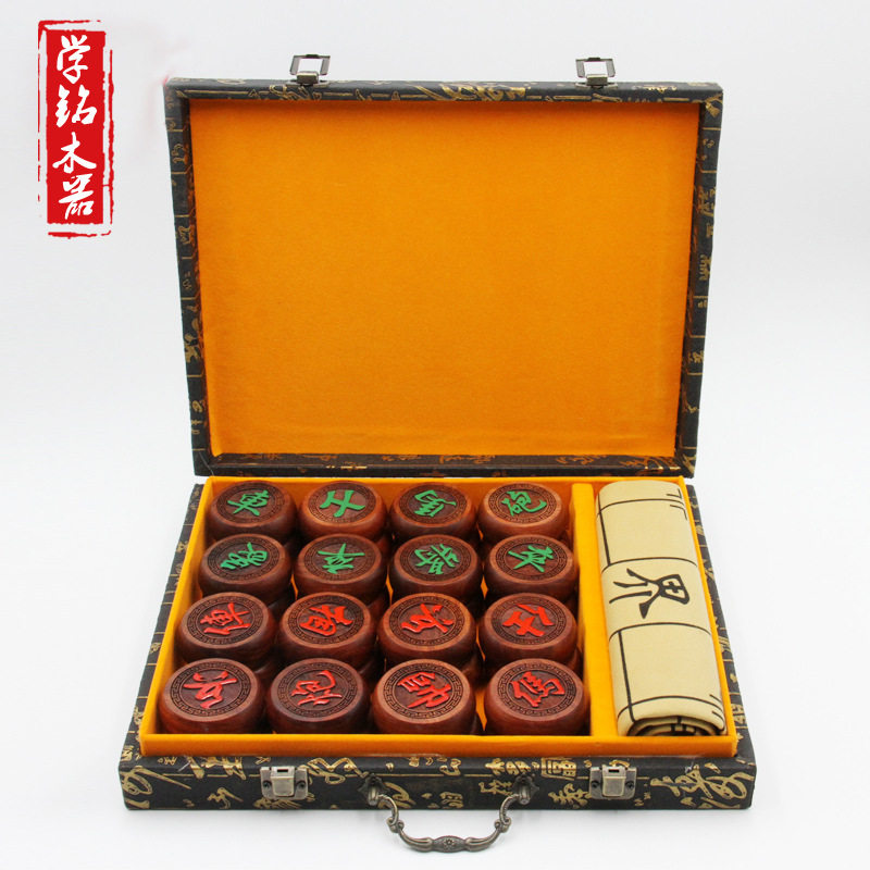 📚 中式实木象棋血檀木黑檀木象棋送皮革棋盘木质中国象棋下棋套装