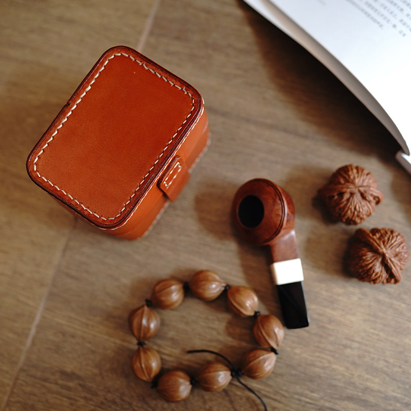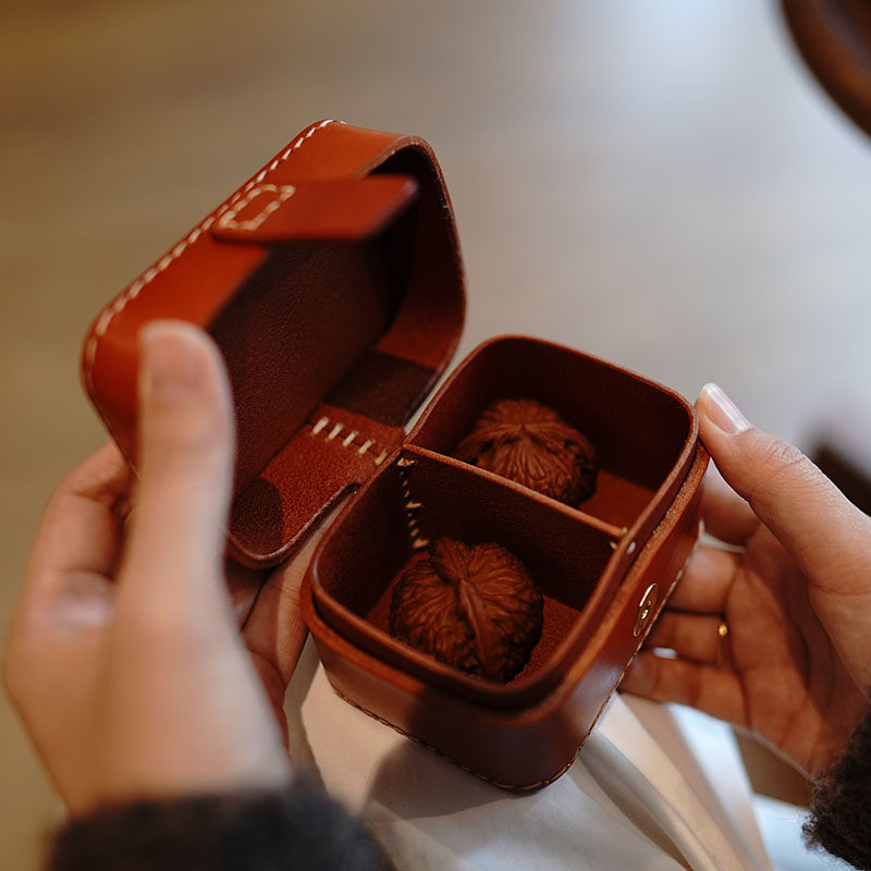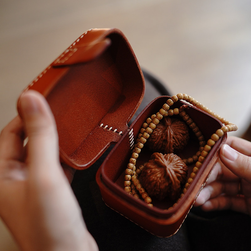 📚 定制手工植鞣树膏牛皮复古便携文玩核桃手串真皮收纳盒珠宝首饰盒