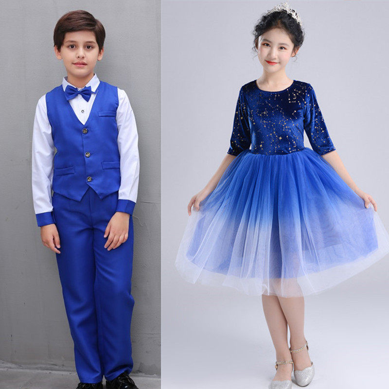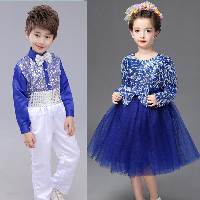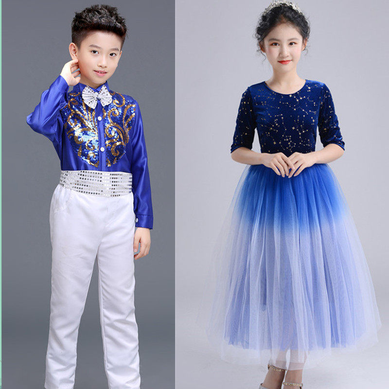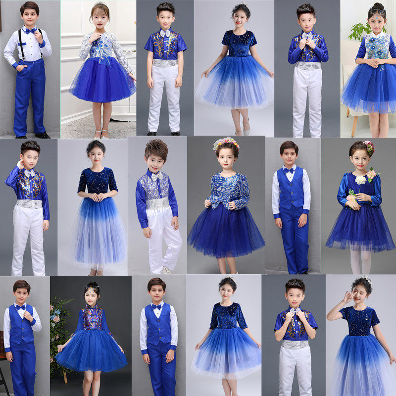📚 元旦儿童演出服女蓬蓬裙表演服装男童中国风主持人礼服幼儿合唱服