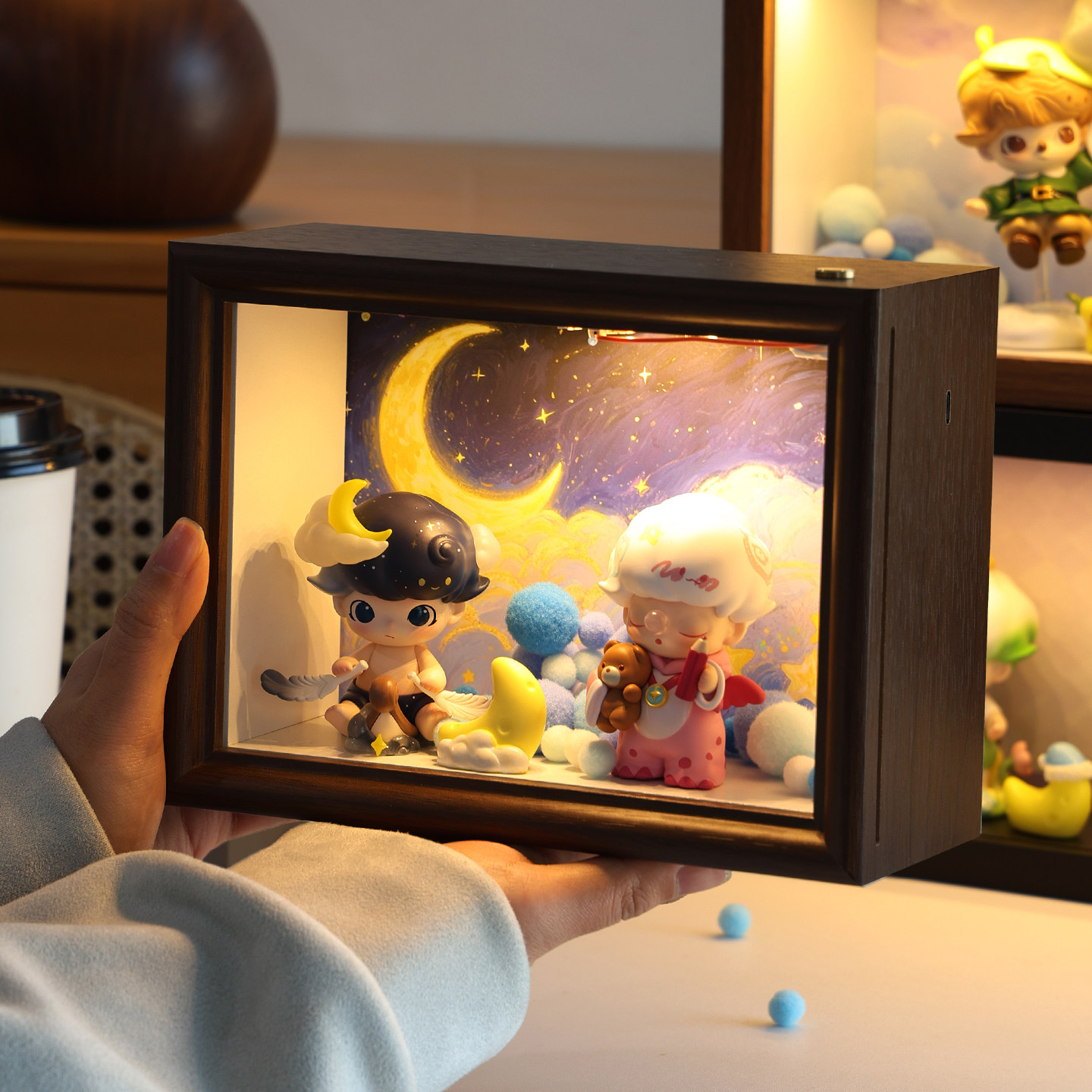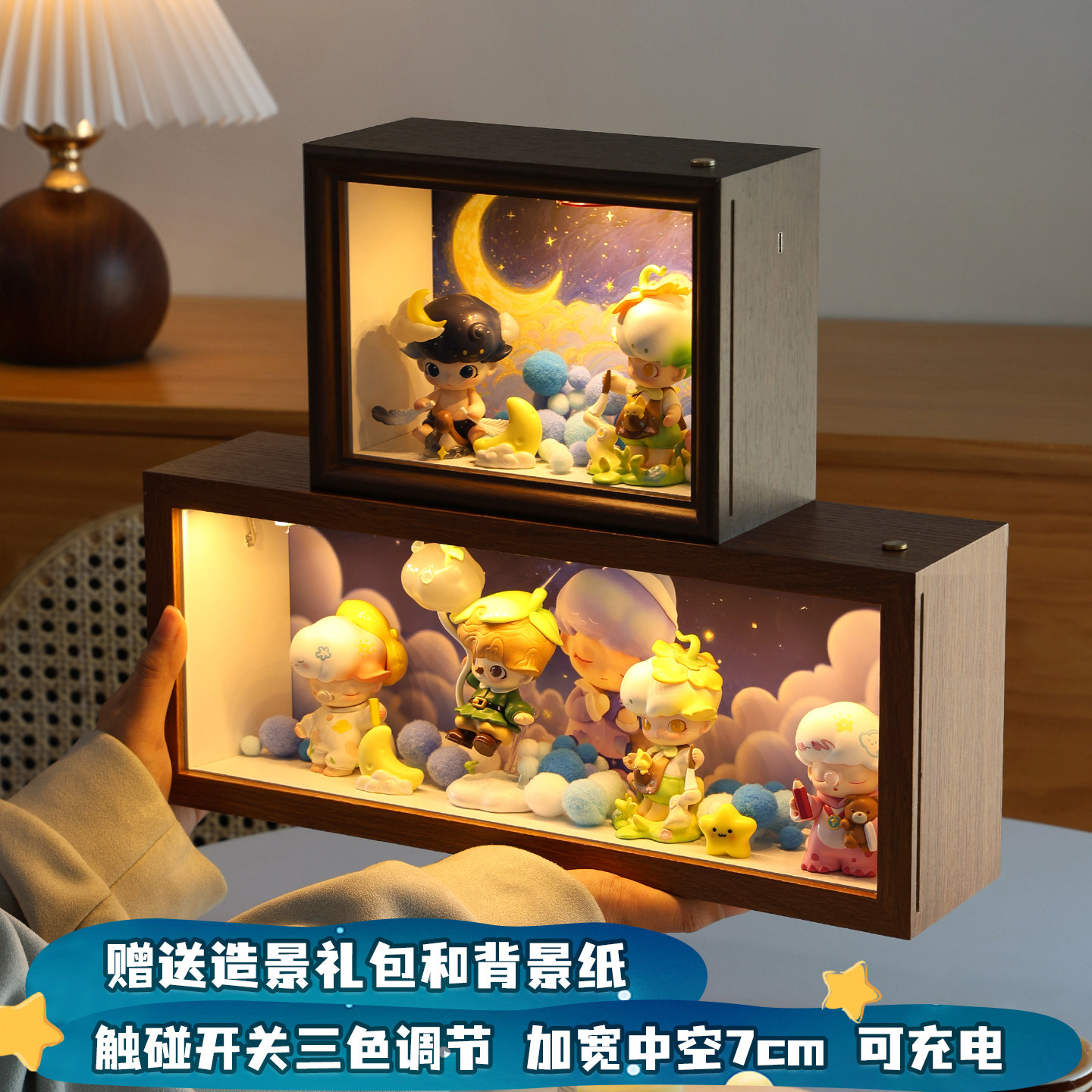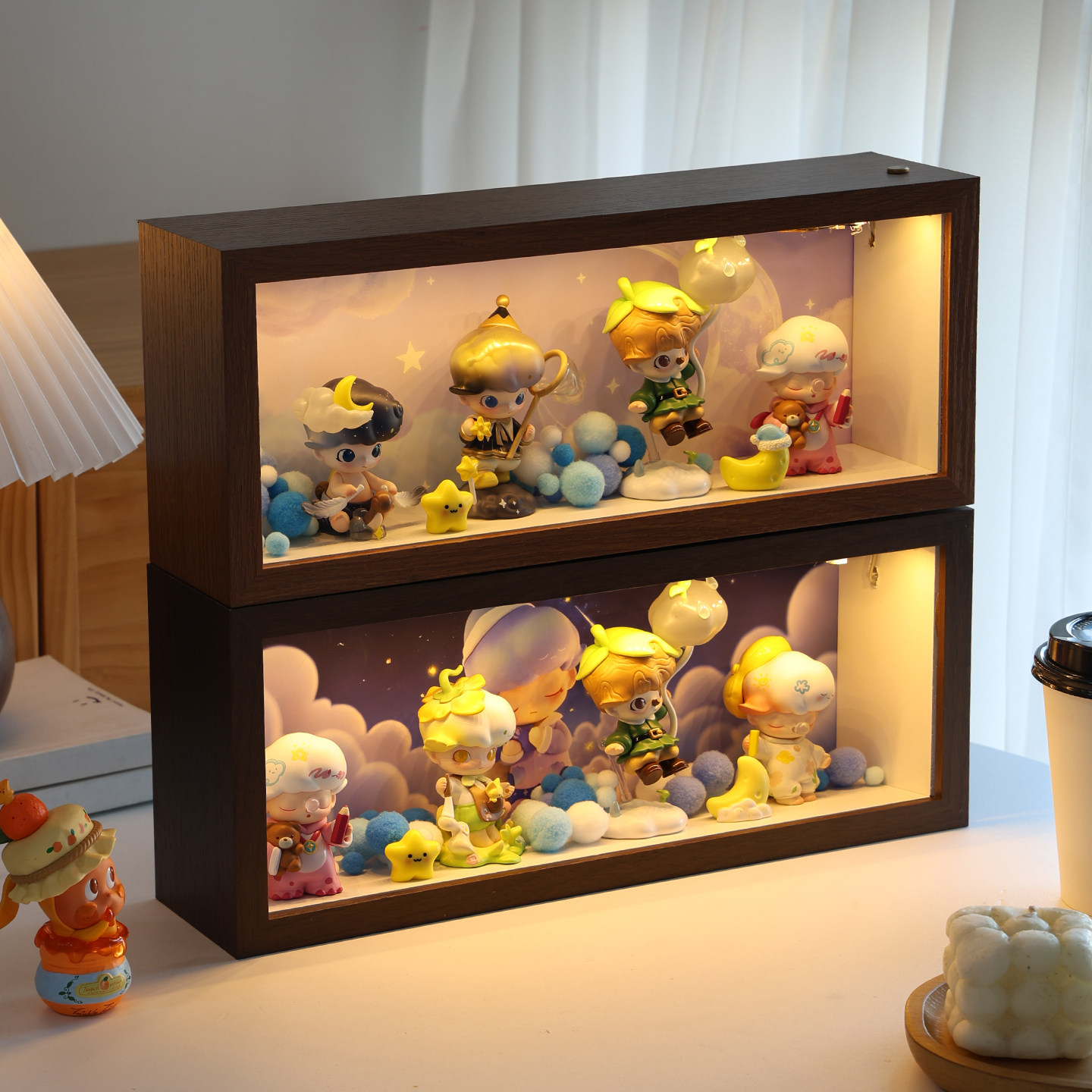 📚 DIMOO梦里梦外盲盒收纳diy造景灯适用相框泡泡玛特手办展示柜摆件
