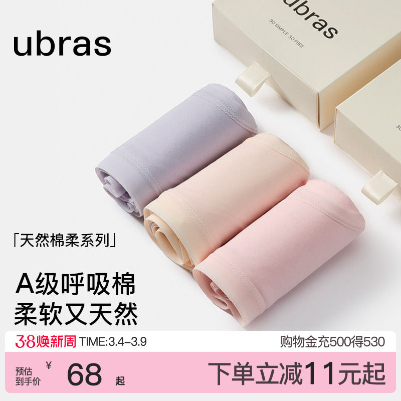 📚 ubras纯棉内裤女100%棉加长7A级抗菌裆透气中高腰三角少女短裤头