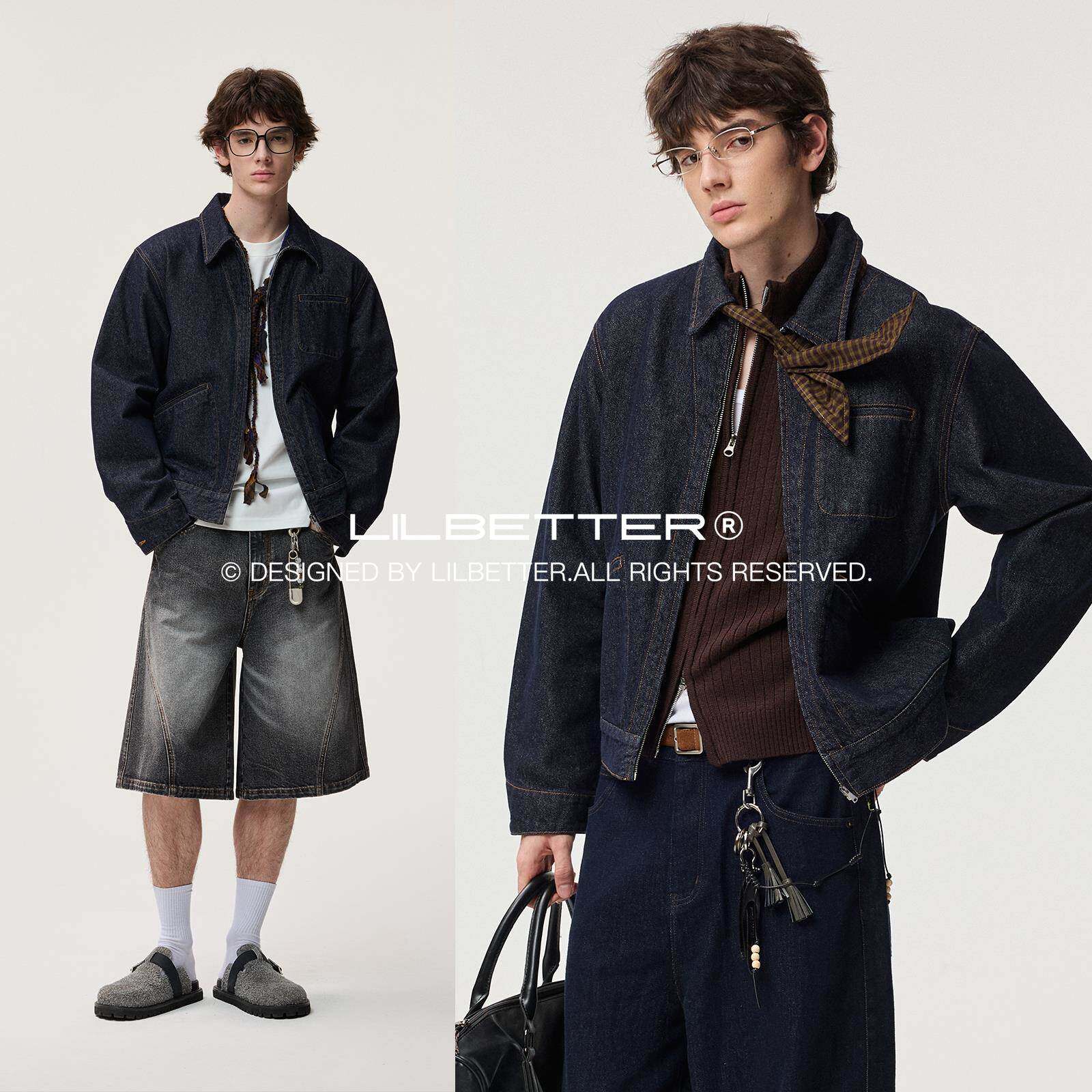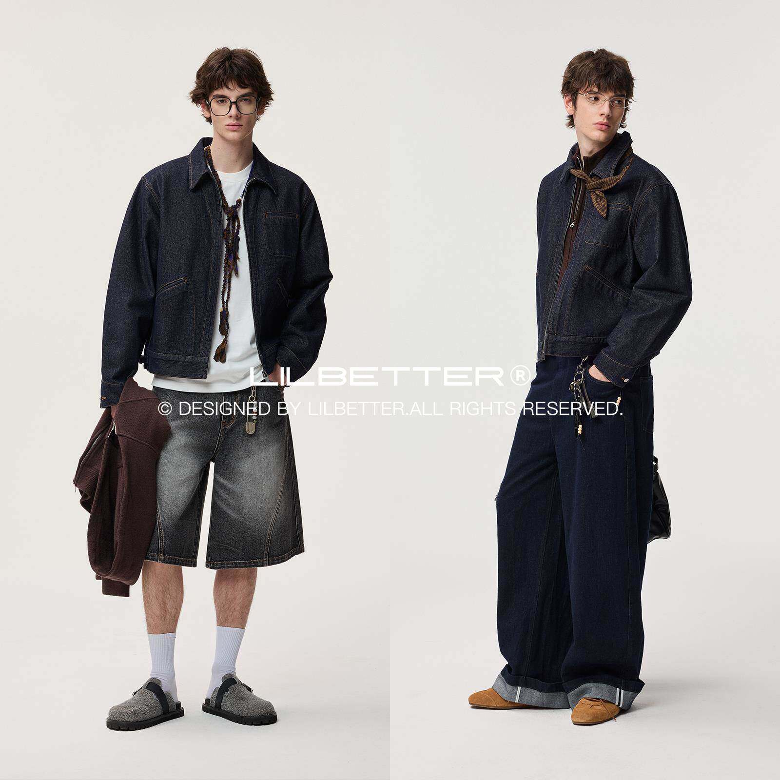 📚 原牛短宽版哥萨克牛仔夹克2025秋明线设计翻领工装外套