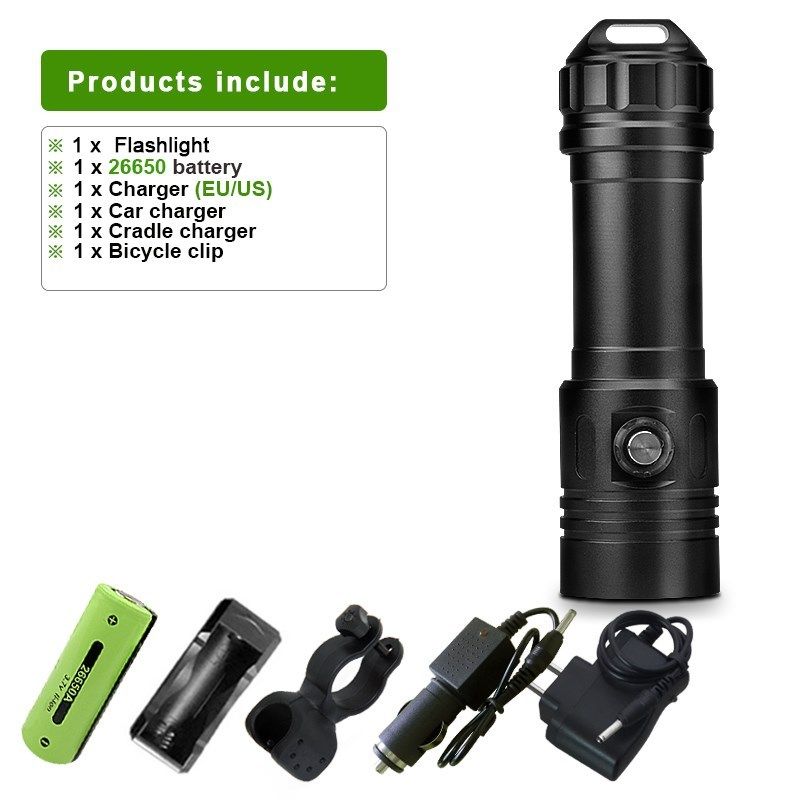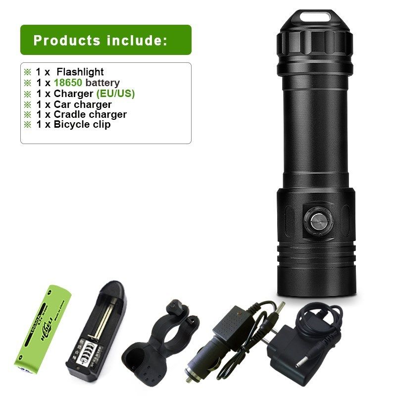 📚 100M DIVING FLASHLIGHT LED TORCH UNDERWATER LAMP RECHARGEAB