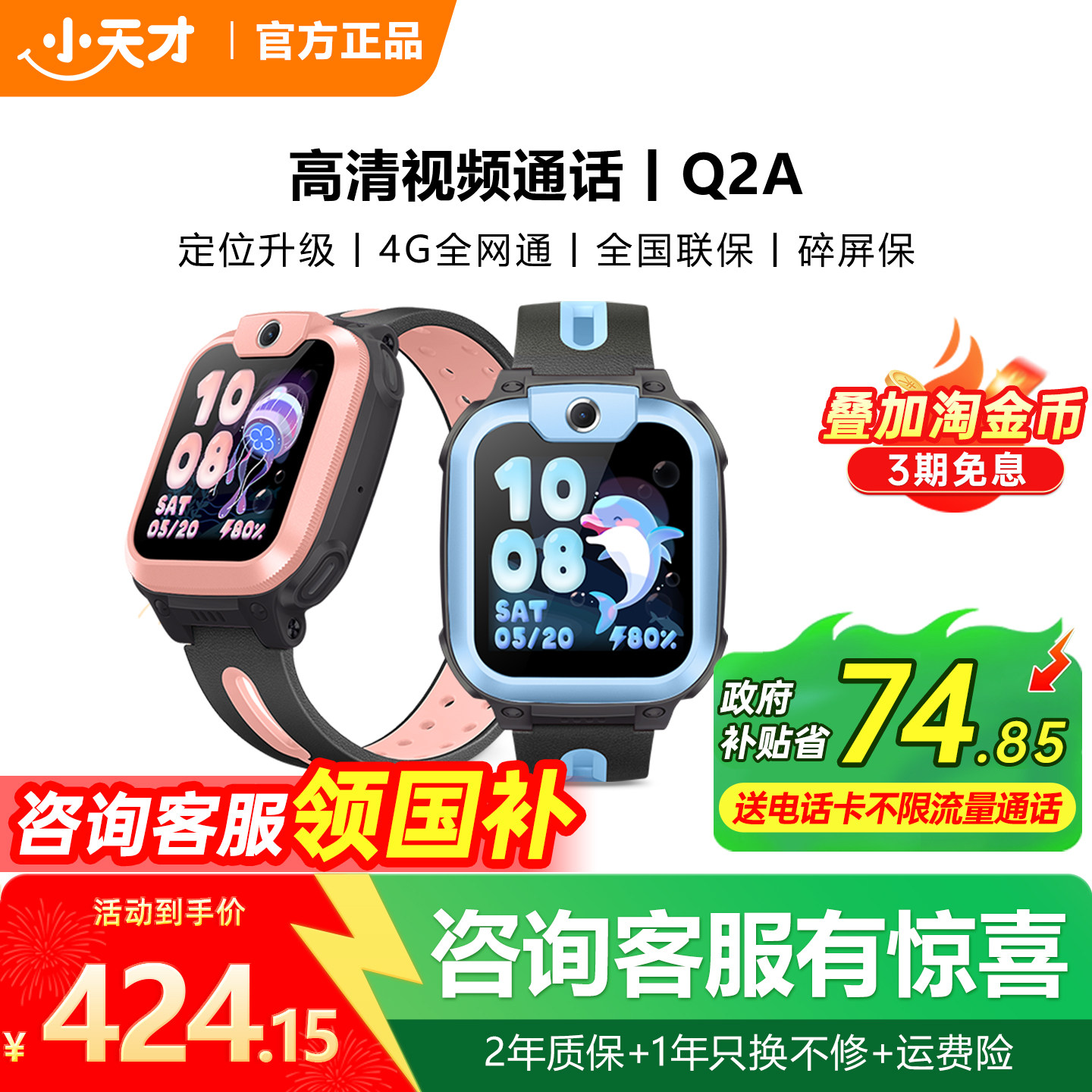📚 【政府补贴立减15%】小天才电话手表Q2A儿童防水定位智能手表Q3A学生4G全网通视频拍照官方正品旗舰官网Q3