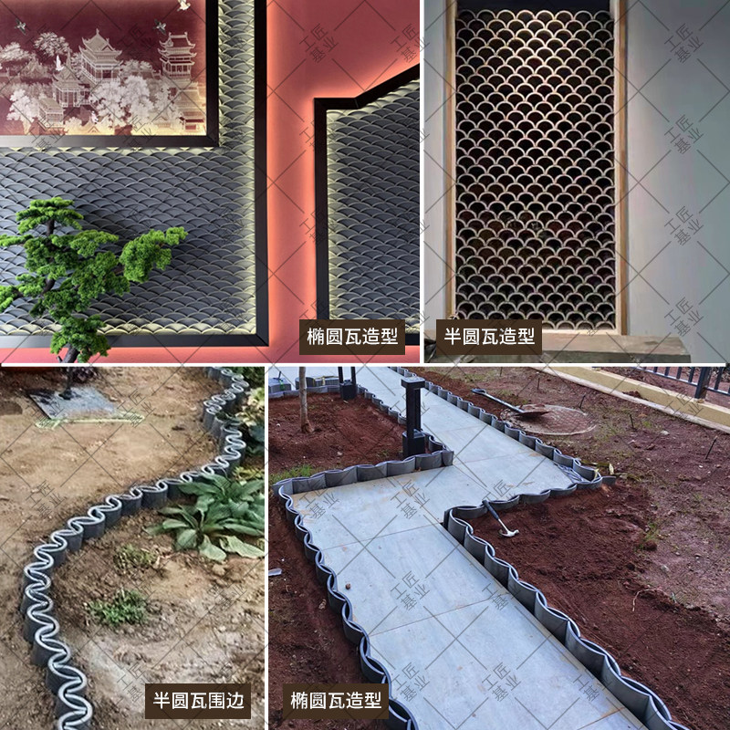 📚 瓦片装饰立瓦铺地围边栏挡砖庭院半圆瓦花园池收边小青瓦造景拼花