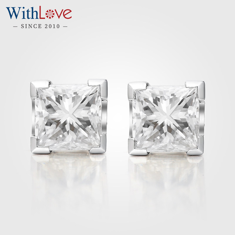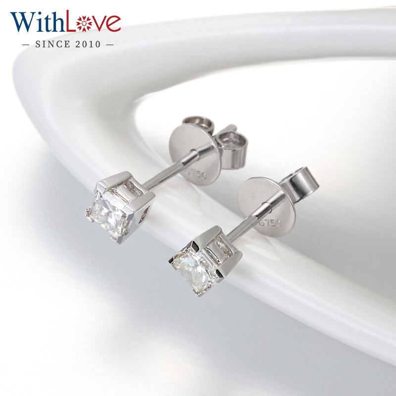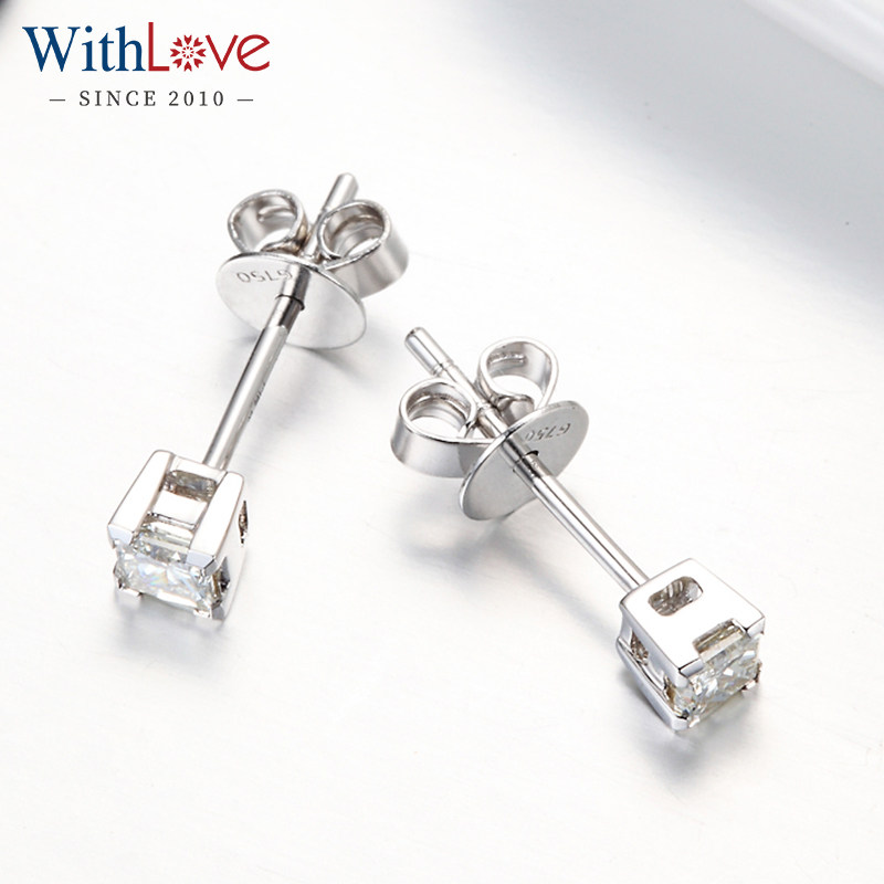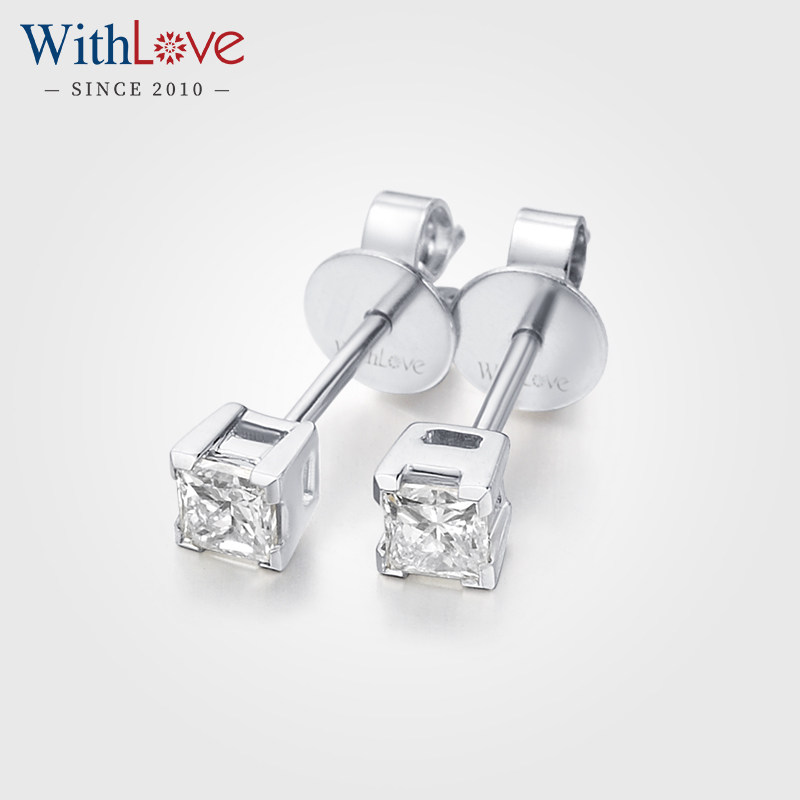 📚 WithLove 18K金30分公主方钻石耳钉简约包角方钻耳饰真钻正品