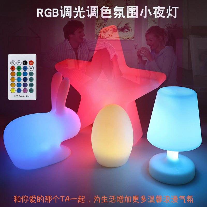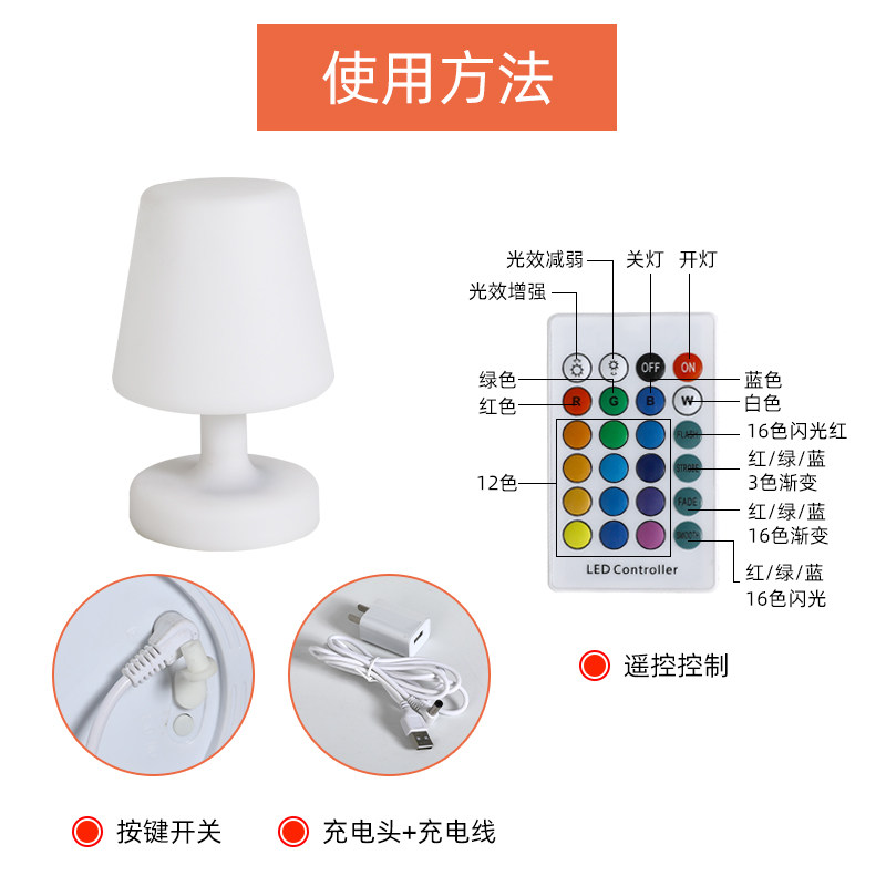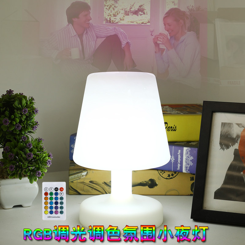 📚 小夜灯台灯滚塑卧室遥控睡眠七彩充电装饰灯情景酒店客房灯工艺品