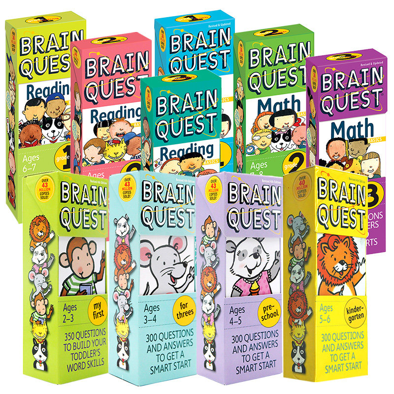 📚 Brain Quest卡片系列 200元4件 Preschool Kindergarten/Reading /Math Grade 大脑任务字卡书英文原版 学前小学生全科练习阅读物