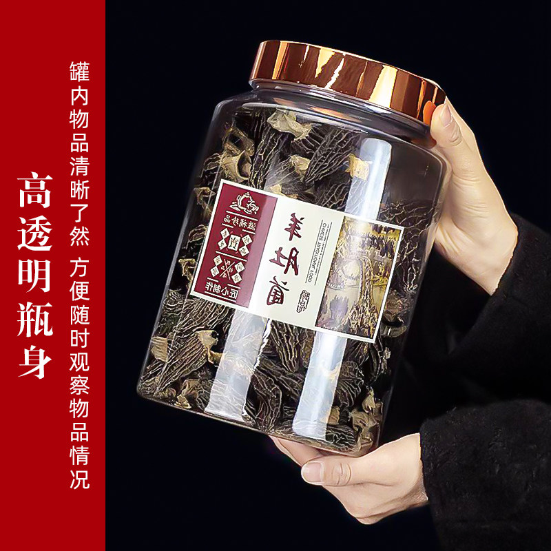 📚 网红款云南墨红玫瑰空瓶子透明大口径羊肚菌金线莲包装盒食品罐子