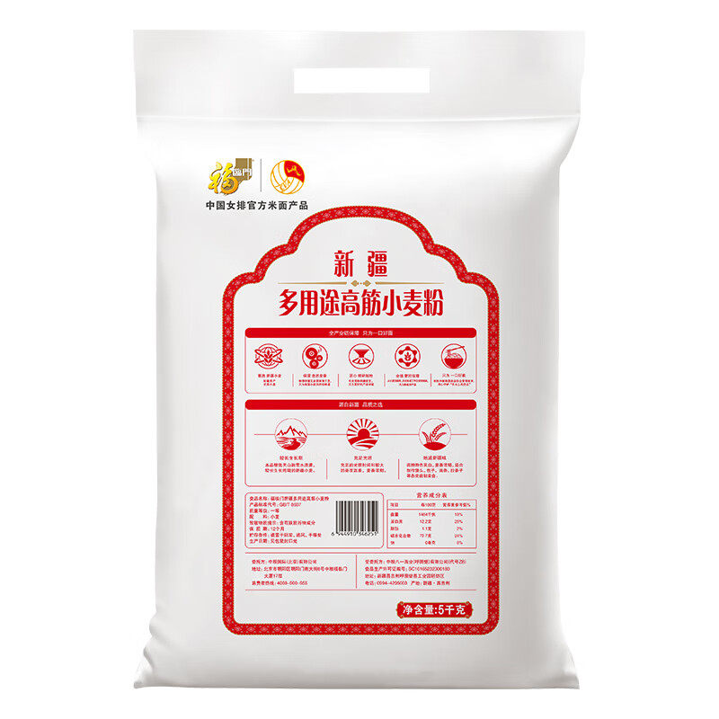 📚 福临门新疆面粉5kg多用途高筋小麦粉家用饺子馒头面条中粮10斤