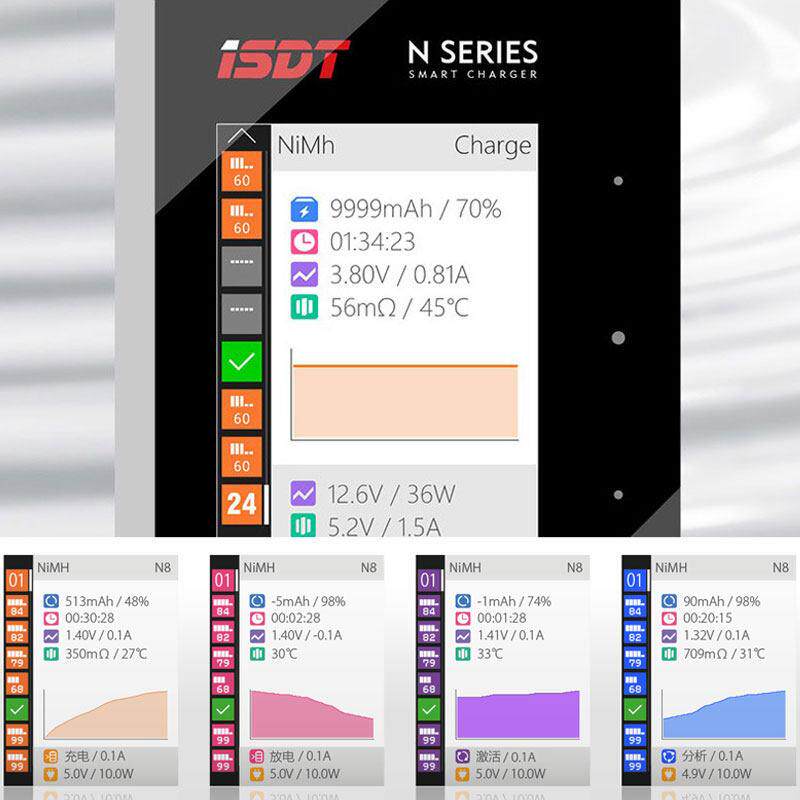 📚 ISDT艾斯特N8智能充电器5号7号镍氢镍镉锂离子磷酸铁锂电池充电放