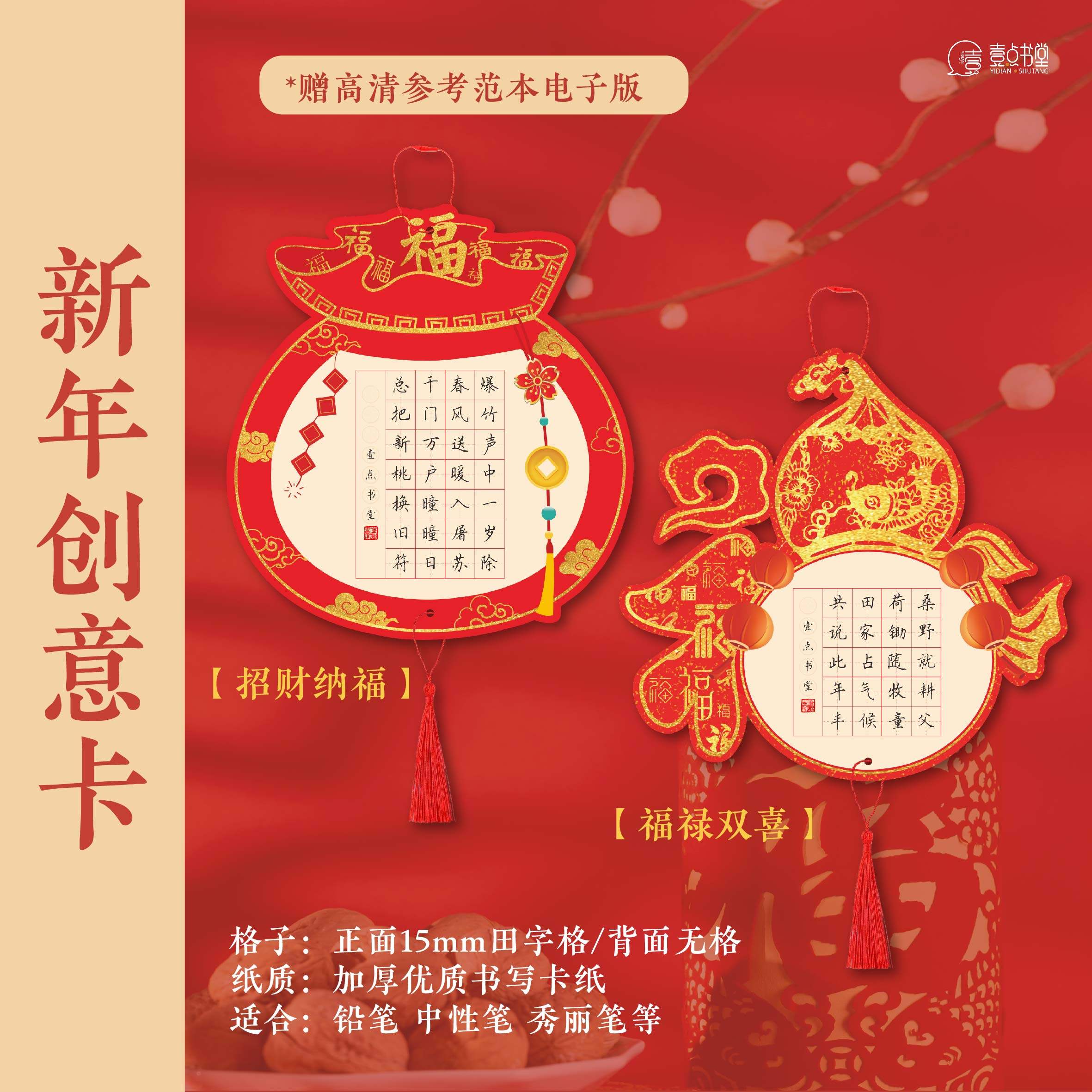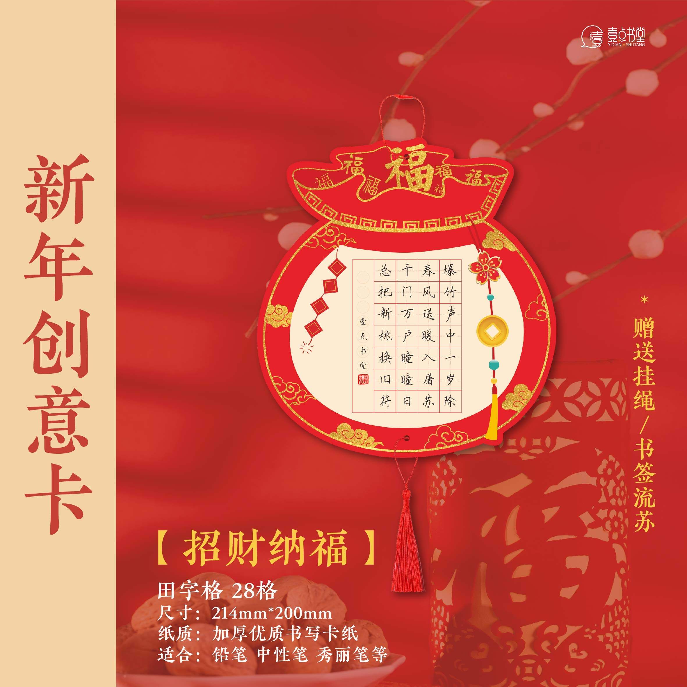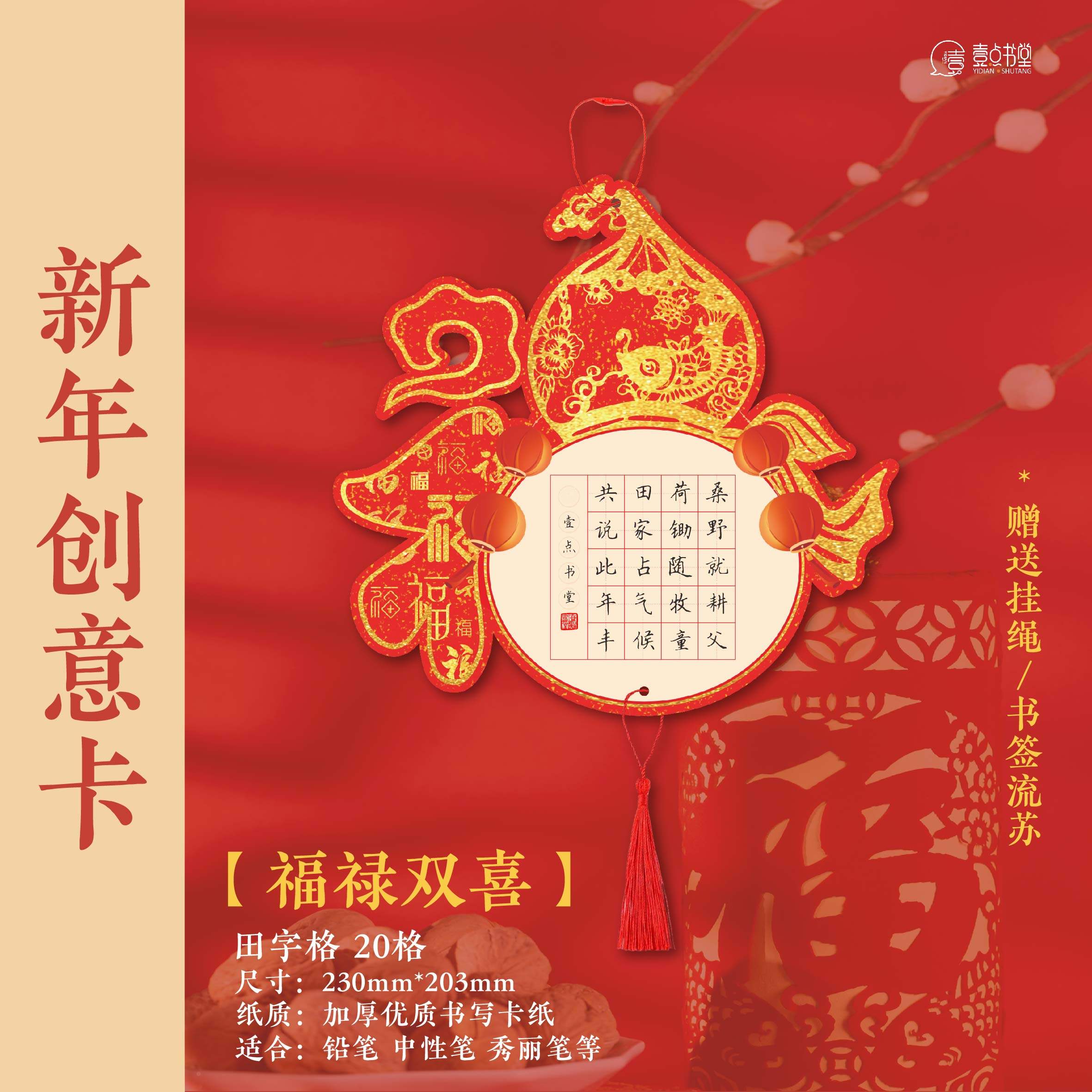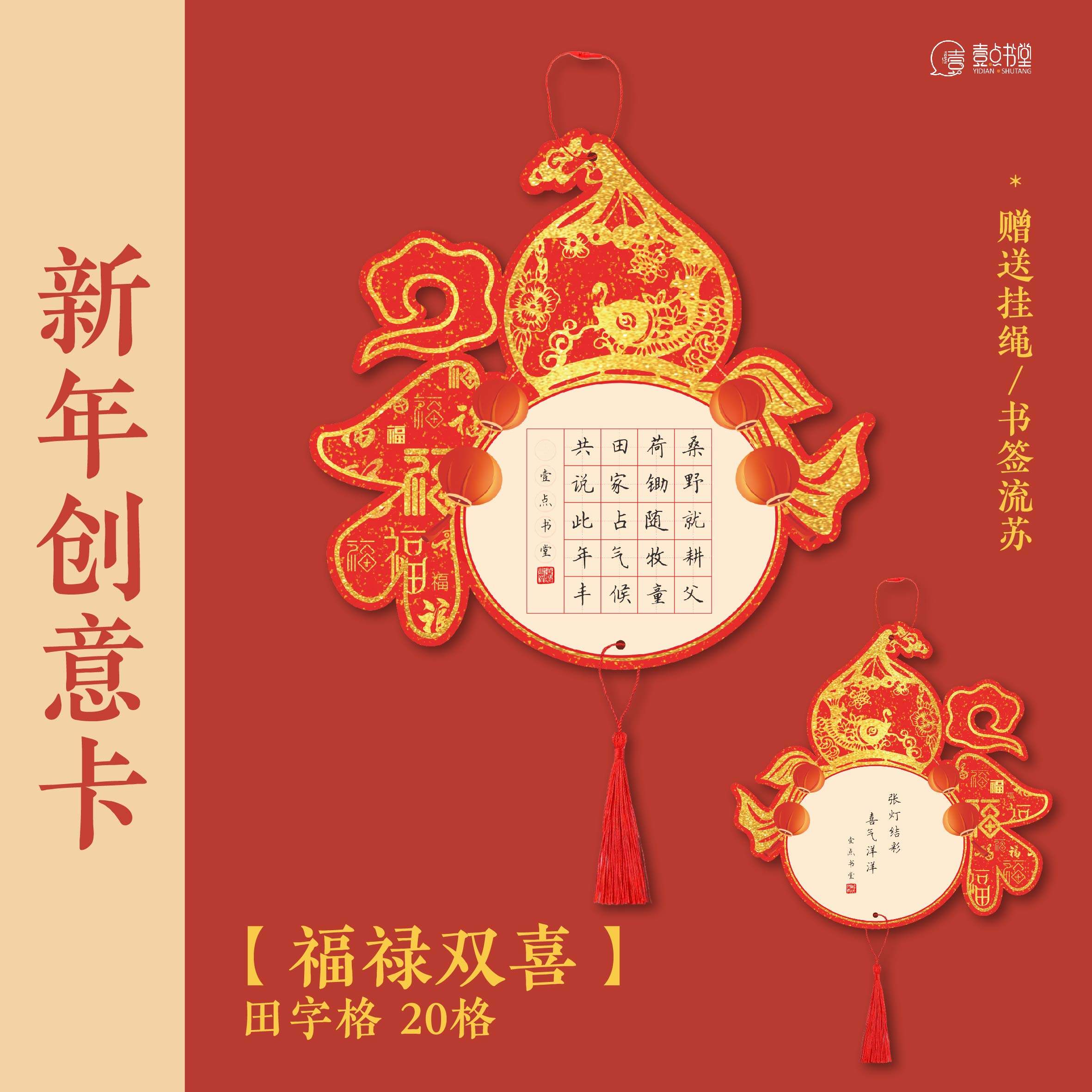 📚 壹点书堂马年原创新年创意卡喜庆红色作品纸硬笔书法装饰挂件