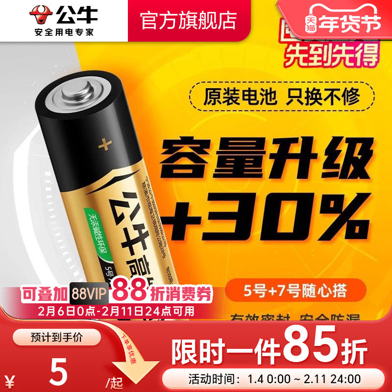 📚 公牛电池5号7号碱性电池五号七号儿童玩具电池电视遥控器电池鼠标干电池24粒正品空调1.5V电池AAA钟表