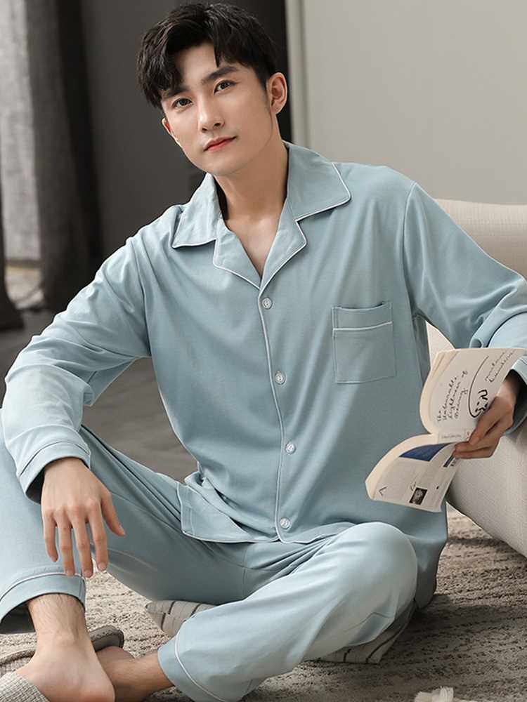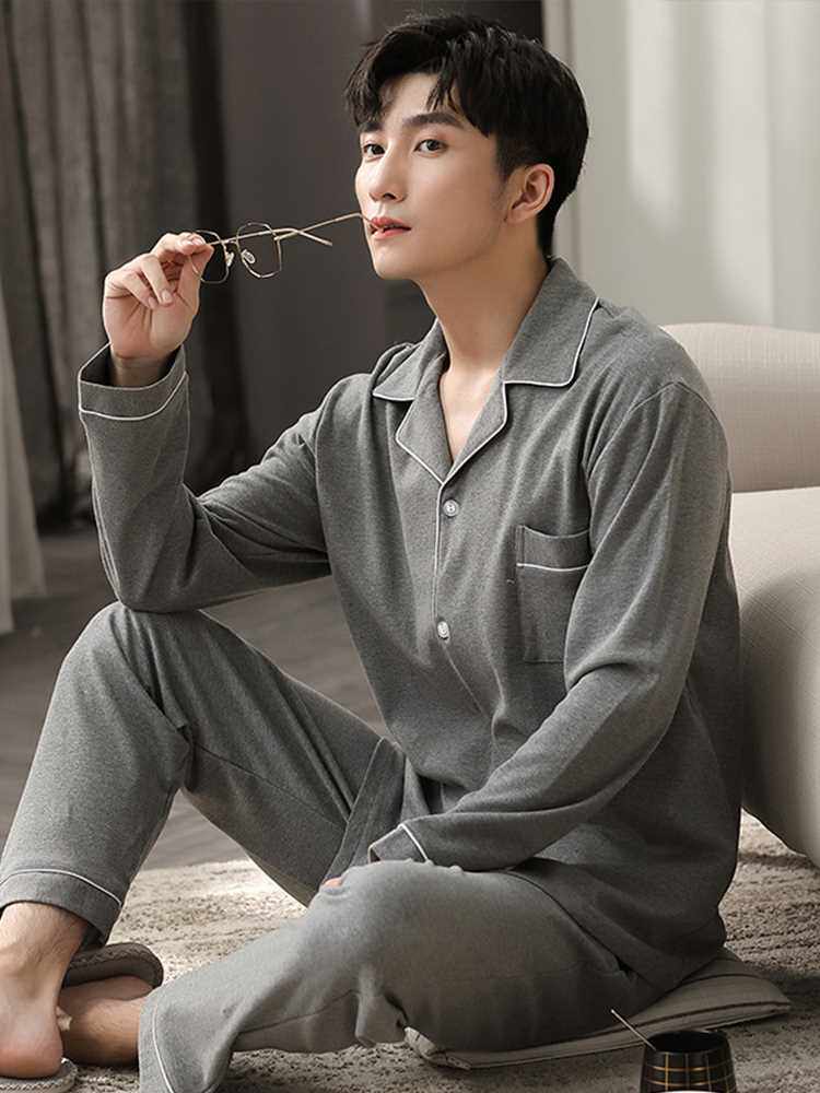 📚 Autumn Winter 100% Cotton Pijama for Men Dormir Lounge Sleep