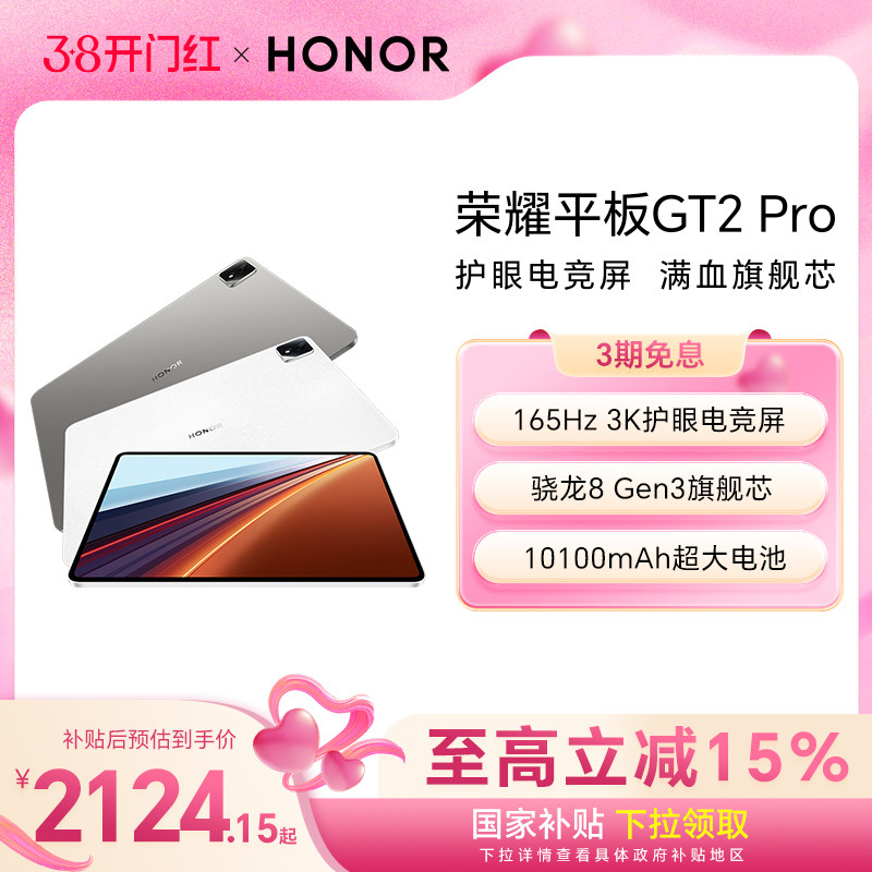 88¥ CZ225 ZVlwUG1Mv9C¥ https://m.tb.cn/h.iXM6b3I 【政府补贴15%】HONOR/荣耀平板GT2 Pro平板电脑12.5英寸 165Hz 3K护眼电竞屏 骁龙8Gen3旗舰芯片 新品gt2pro --------------------- 【原售价】3,099元 【现售价】2,699元。