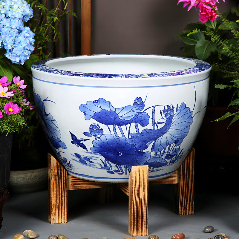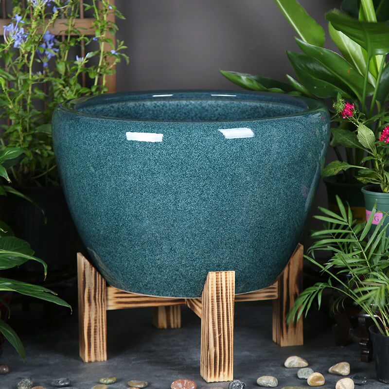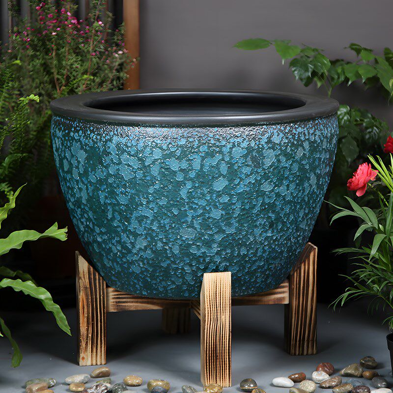 📚 庭院大缸古法养鱼盆可配实木座大型落地阳台水缸客厅沉香木造景盆