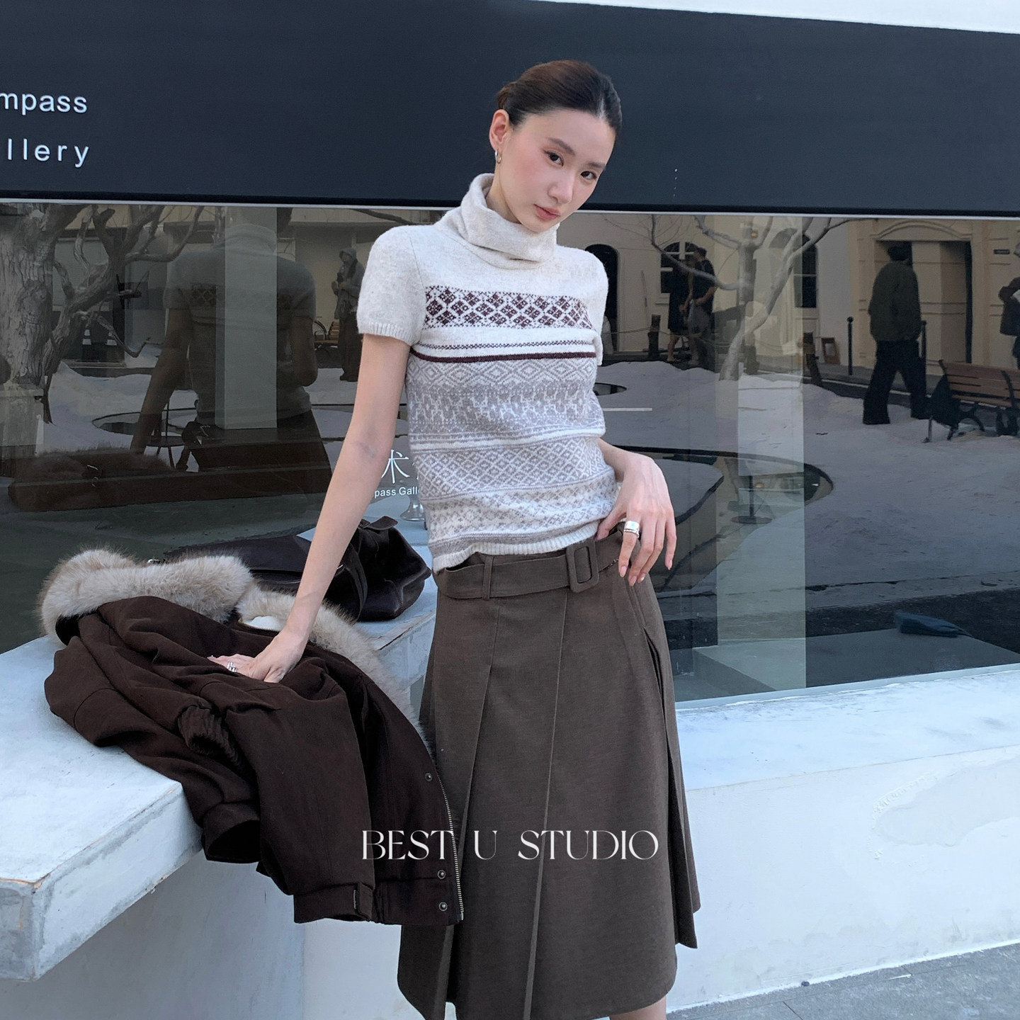 #TCCW学院风 #高领条纹针织短袖毛衣 #冬日上新 #气质百搭上衣 #券后价79