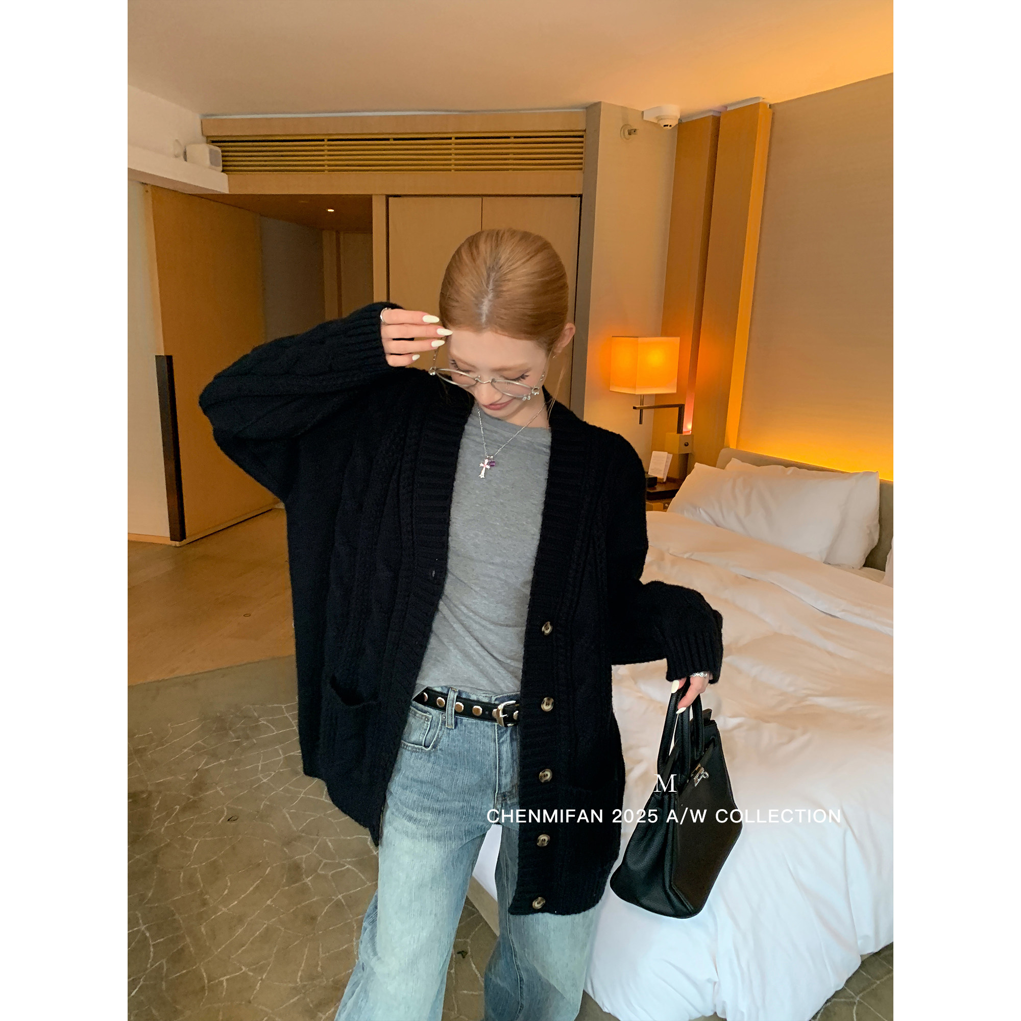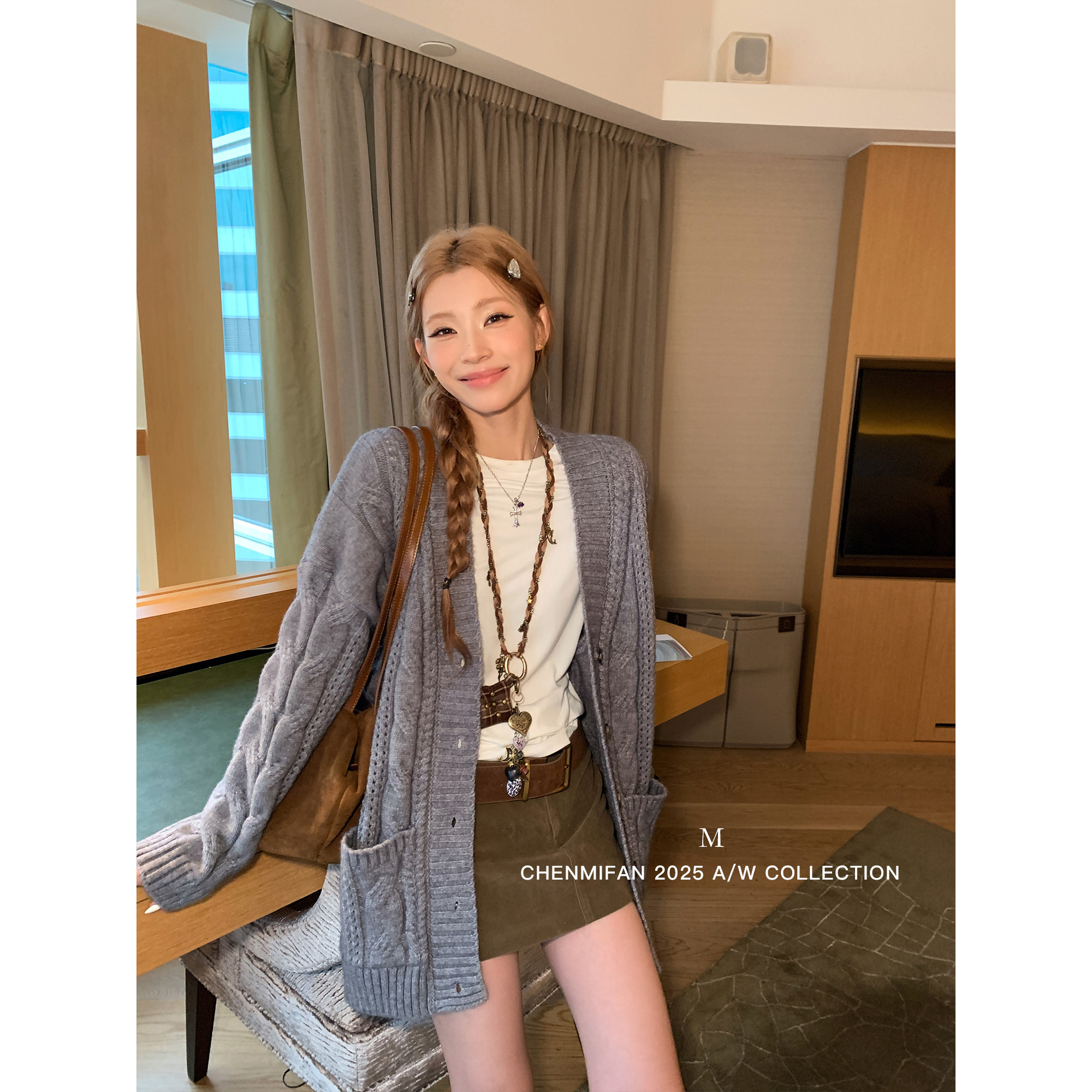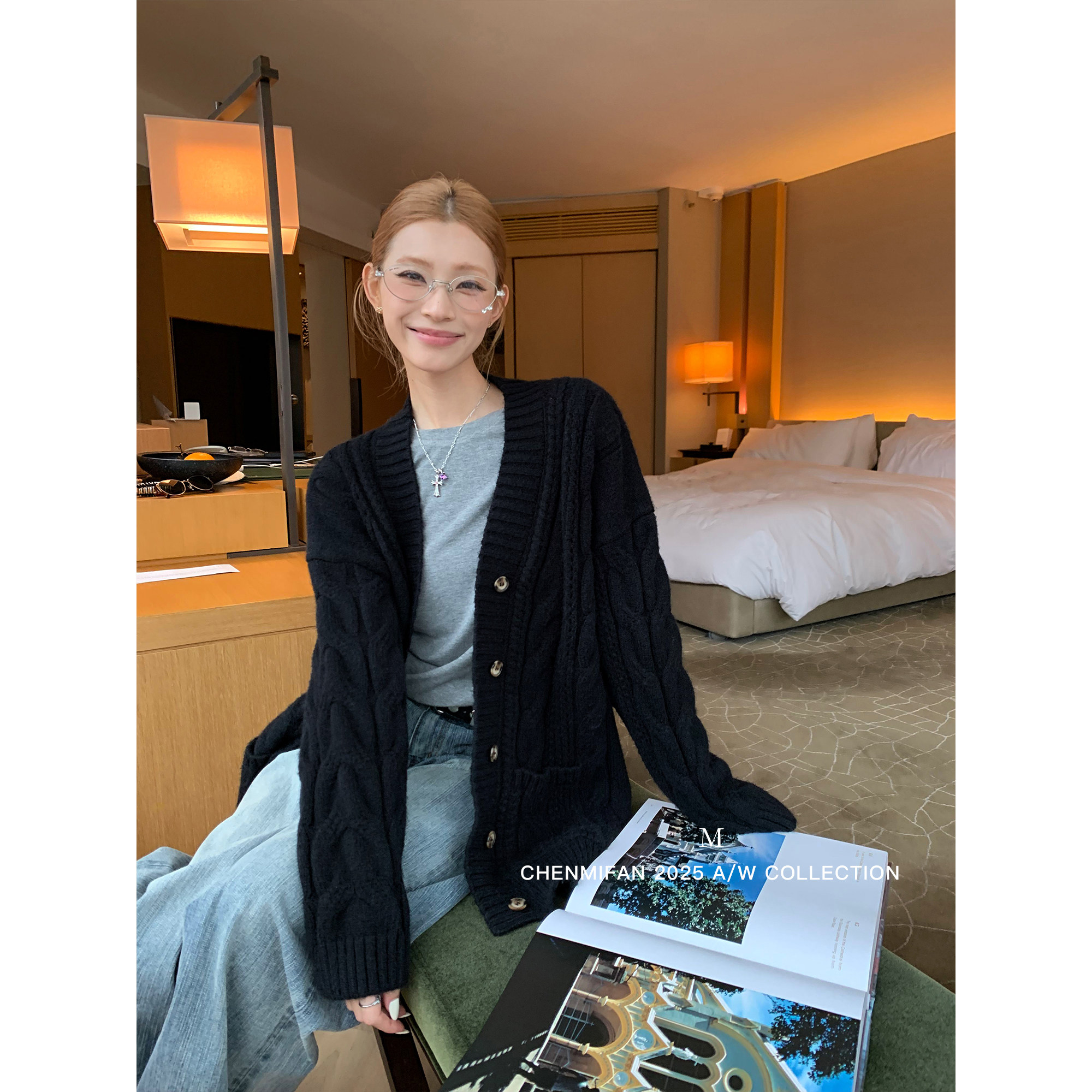 📚 辰米范 温柔底牌 麻花v领毛衣开衫女秋冬慵懒宽松中长款针织外套