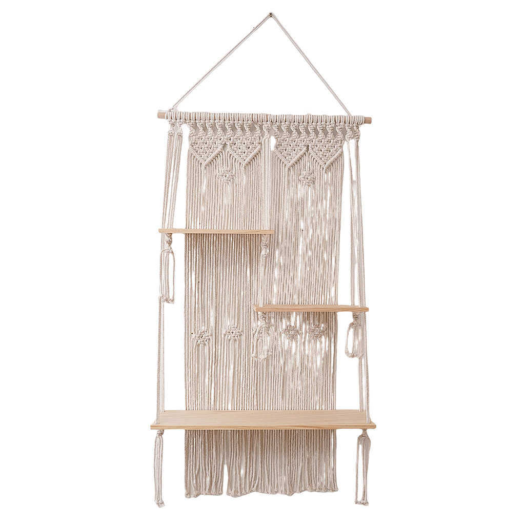 📚 酒店物宿墙上米亚绳搁板挂毯装饰棉置置床头民架波西客厅架编织物
