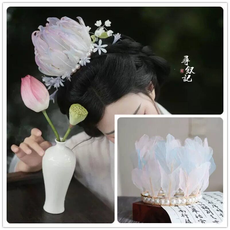 📚 宋制汉服头饰明代围髻汉服配饰清冷感花冠盘发挽莲花发头冠饰品