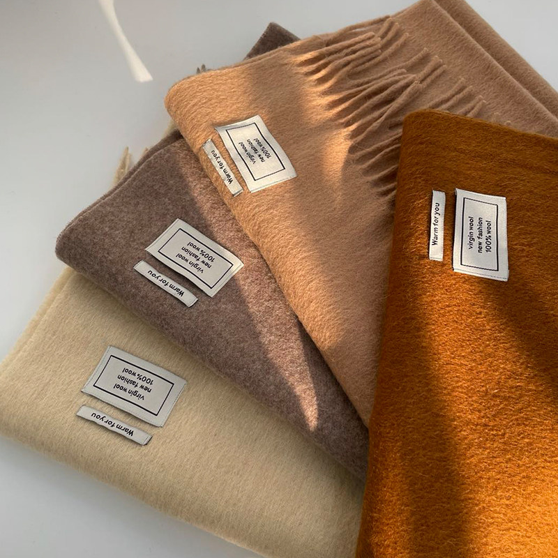 📚 蓝色100%纯羊毛情侣款围巾女冬季纯色百搭保暖高档克莱因蓝围脖男