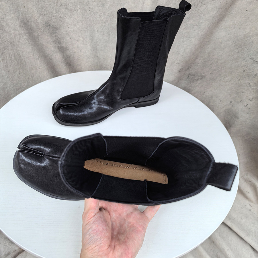 📚 2025秋冬真皮短靴男女同款水洗马皮tabi分趾鞋女分趾靴低跟烟筒靴