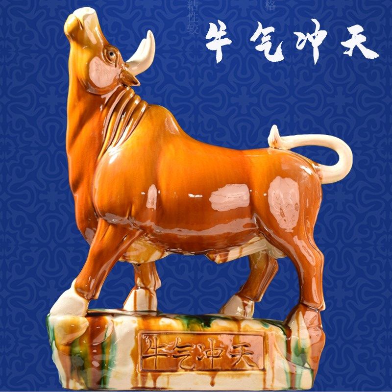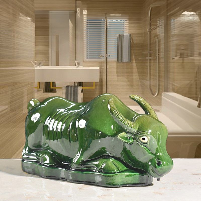 📚 正北卫生间瓷牛摆件家居厨房陶瓷牛工艺品低头喝水牛黄牛水牛卧牛