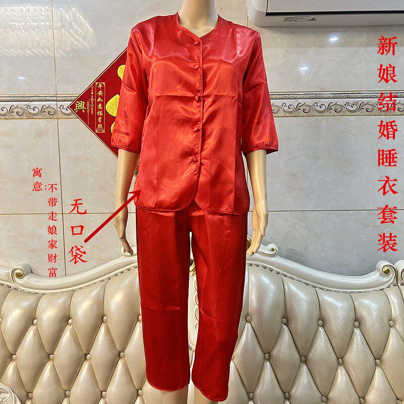 📚 香港结婚睡衣红色新娘上头服套装龙凤褂秀禾服打底内搭 无口袋V领