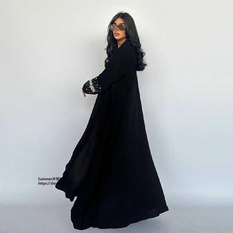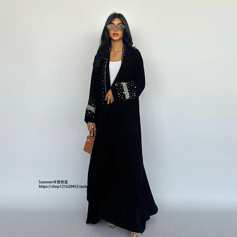 📚 阿拉伯黑袍迪拜烫钻泡珠开衫长袍连衣裙 Hot drilling black robe
