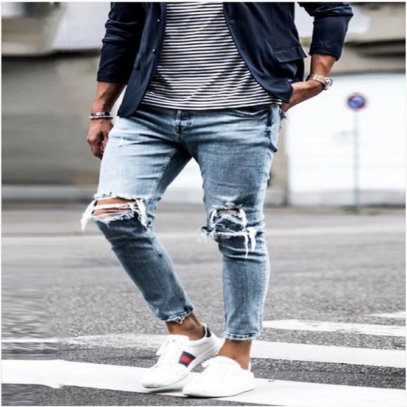 📚 Hole Broken Mens Jeans European American Style Slimfit Pants