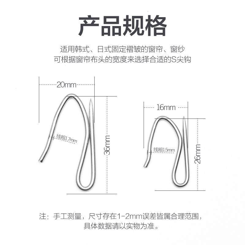 📚 窗帘挂钩S钩窗帘钩不锈钢钩子大小S勾尖钩汽车窗帘勾挂针配件