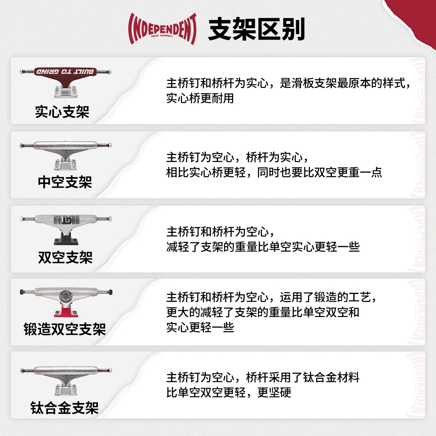 📚 美国进口INDEPENDENT桥indy双空支架钛合金滑板支架多款专业桥