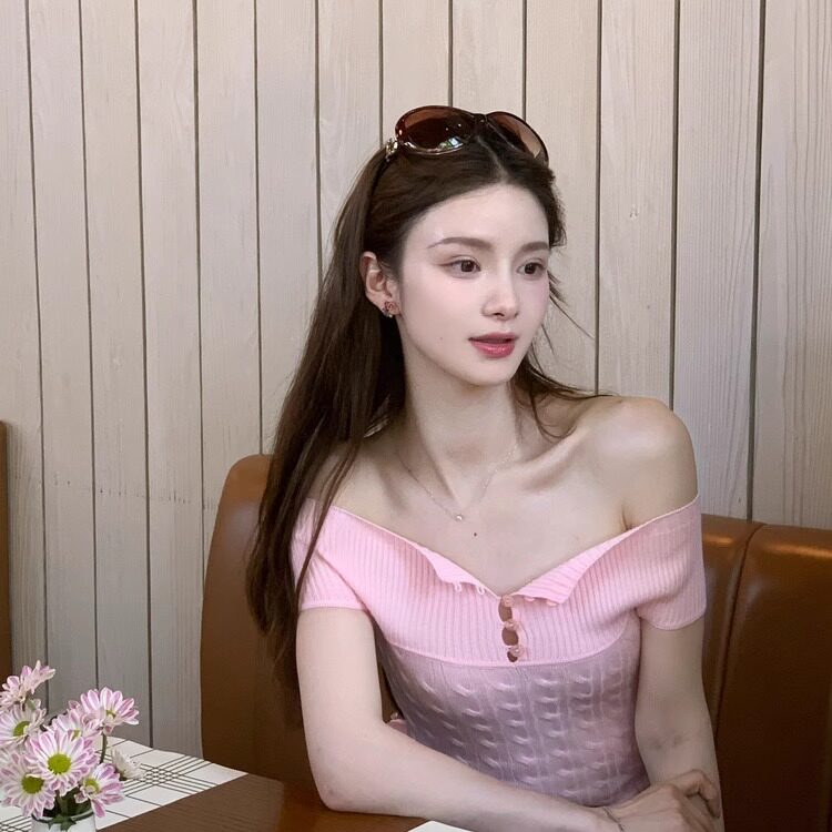 📚 小魔女Wcouture原创 多种穿法活泼纯欲一字领系扣针织背心上衣