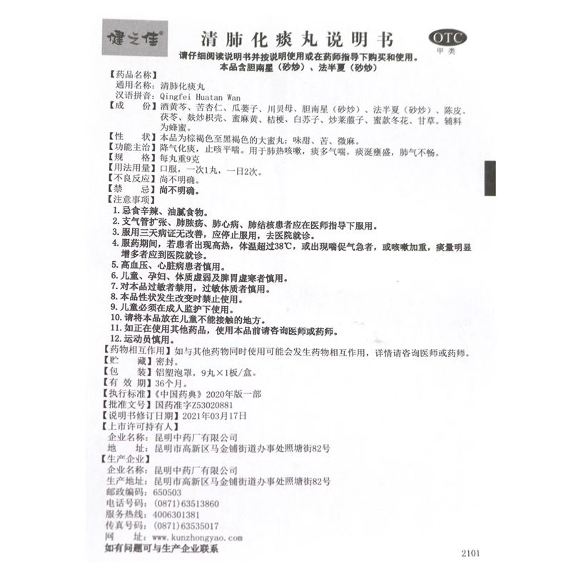 📚 健之佳 清肺化痰丸 9g*9丸/盒 降气化痰止咳平喘肺热咳嗽肺气不畅