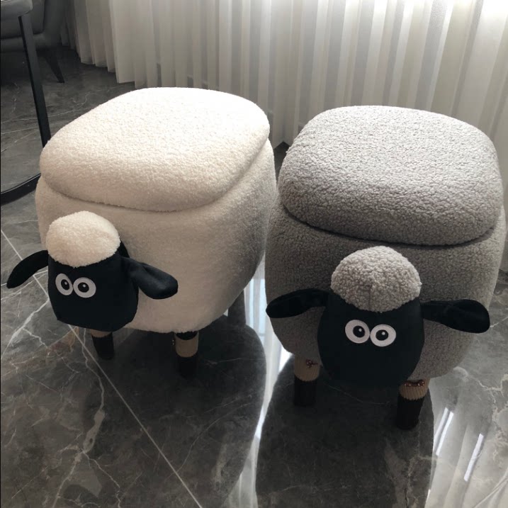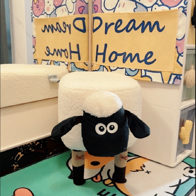 📚 小羊肖恩换鞋凳矮凳家用穿鞋凳实木梳妆凳收纳创意可爱化妆凳脚凳