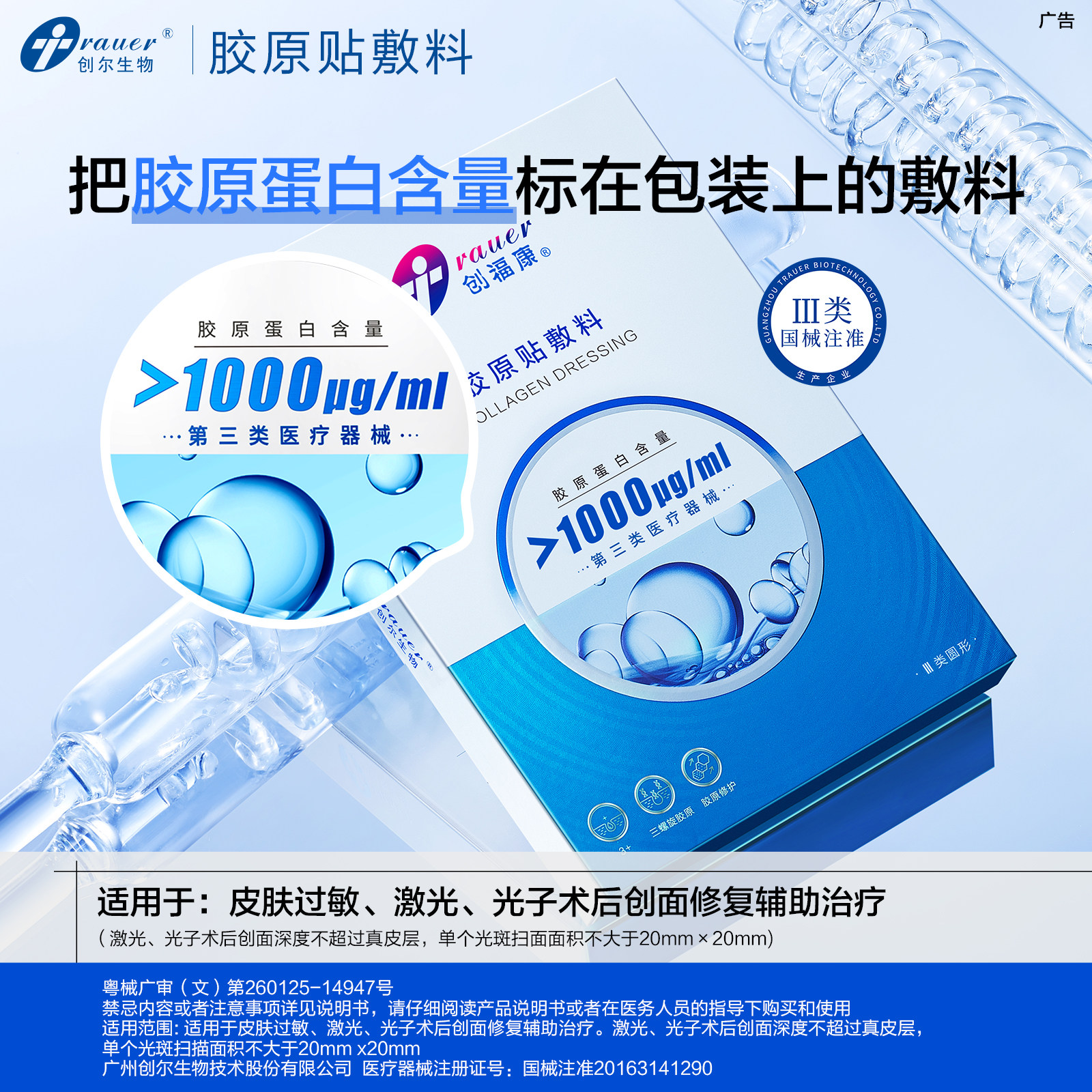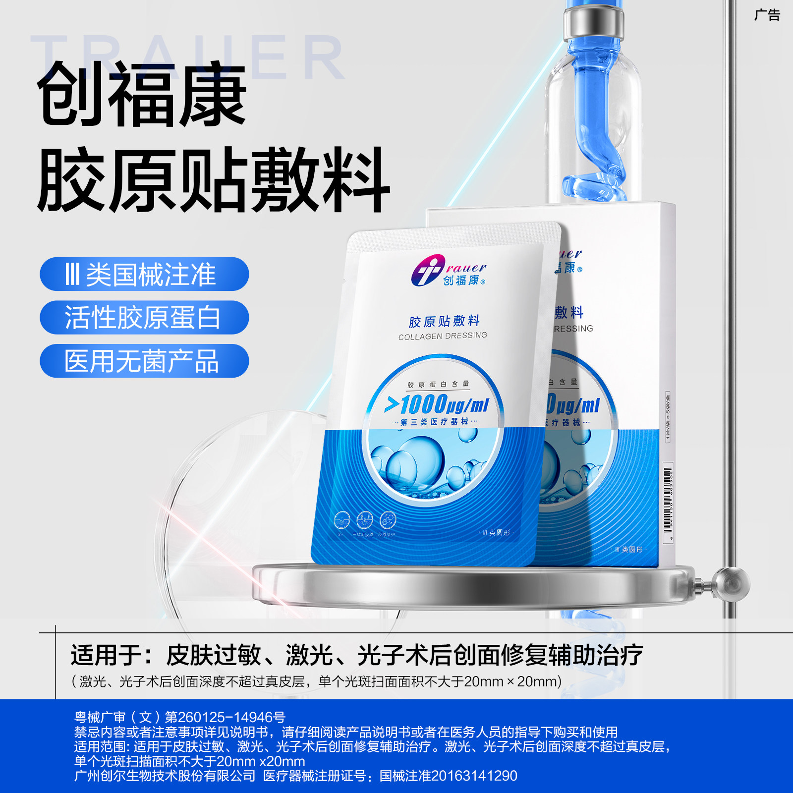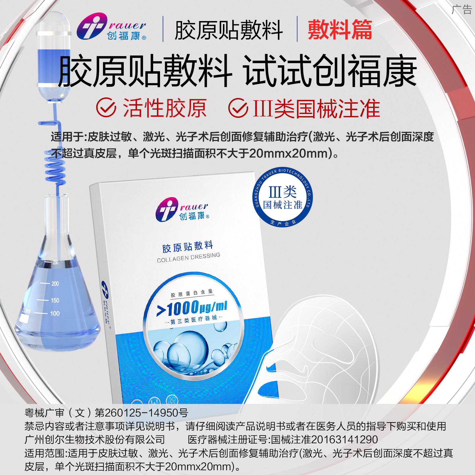 📚 创福康1000浓度胶原贴医用敷料激光术后修复辅助治疗非面膜单片装