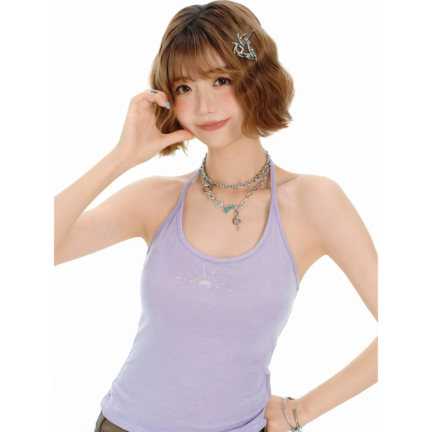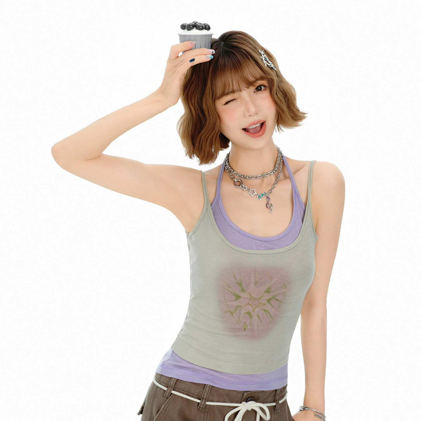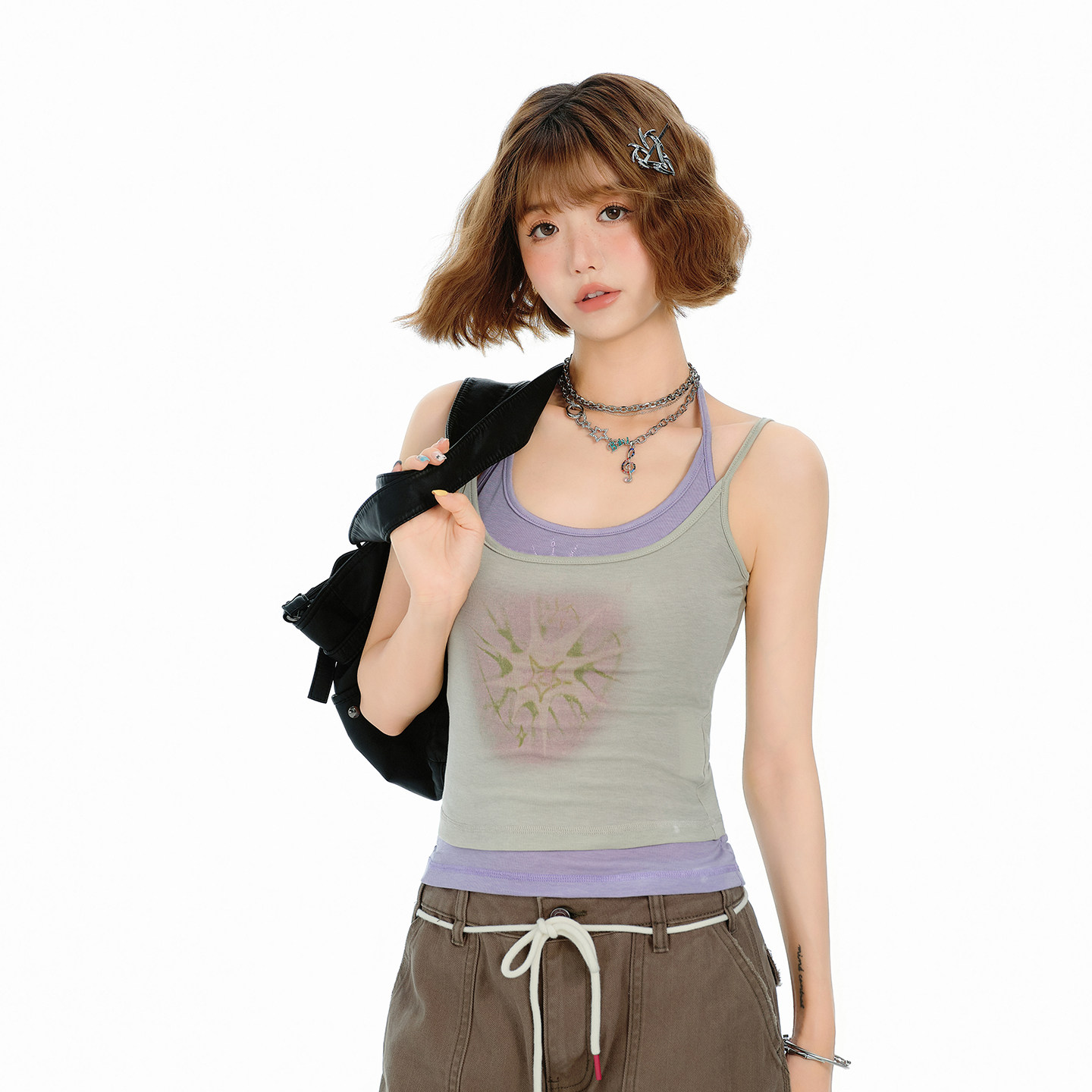 📚 Girlyhalo美式复古烫钻印花两件套吊带背心女夏新款可分开穿上衣